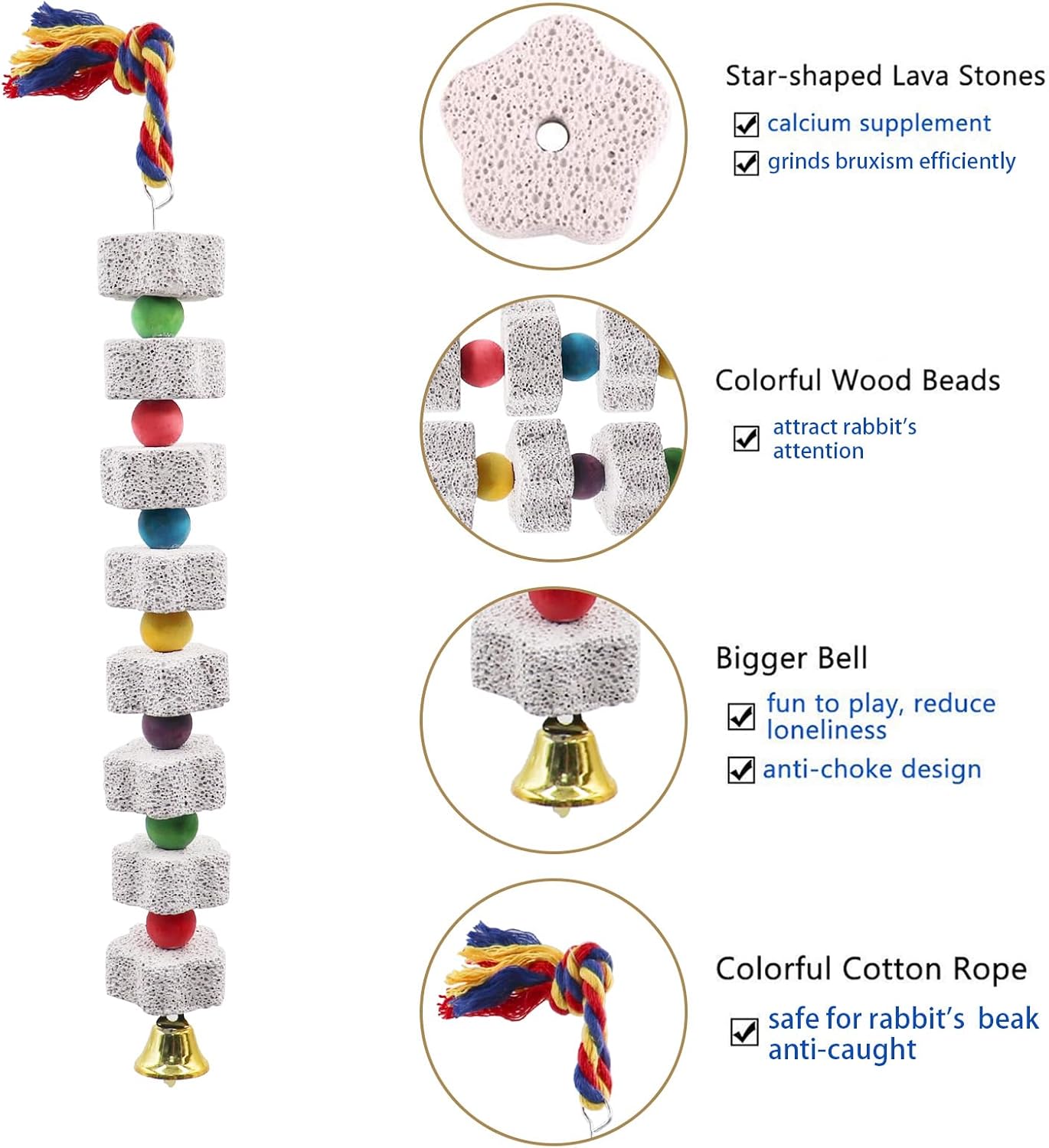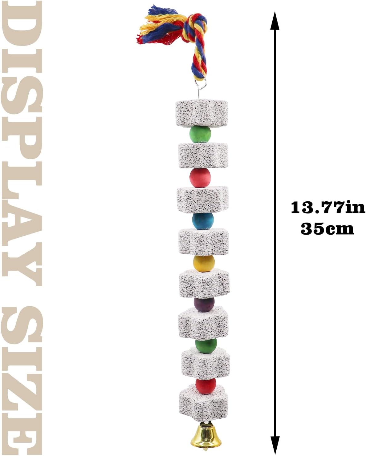 2 Pack Parrot Chewing Toys with Calcium Stone & Bells – Long-Lasting Bird Cage Accessories for Parakeets, Cockatiels, Budgies, Lovebirds, African Grey, Hamsters, Chinchillas & Rabbits