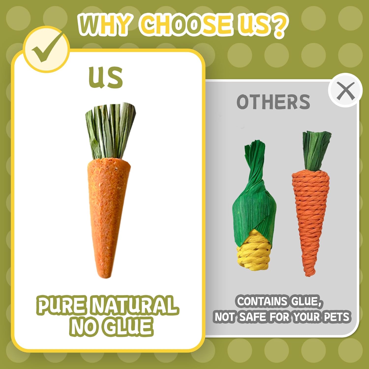 Dental Health Protection: Natural apple wood branches and sweet bamboo sticks provide optimal rodent chew toys resistance to control tooth overgrowth; fibrous hay sticks and chewable pine cones satisfy natural gnawing instincts while promoting dental hygiene; edible carrot snacks redirect chewing urges away from furniture.