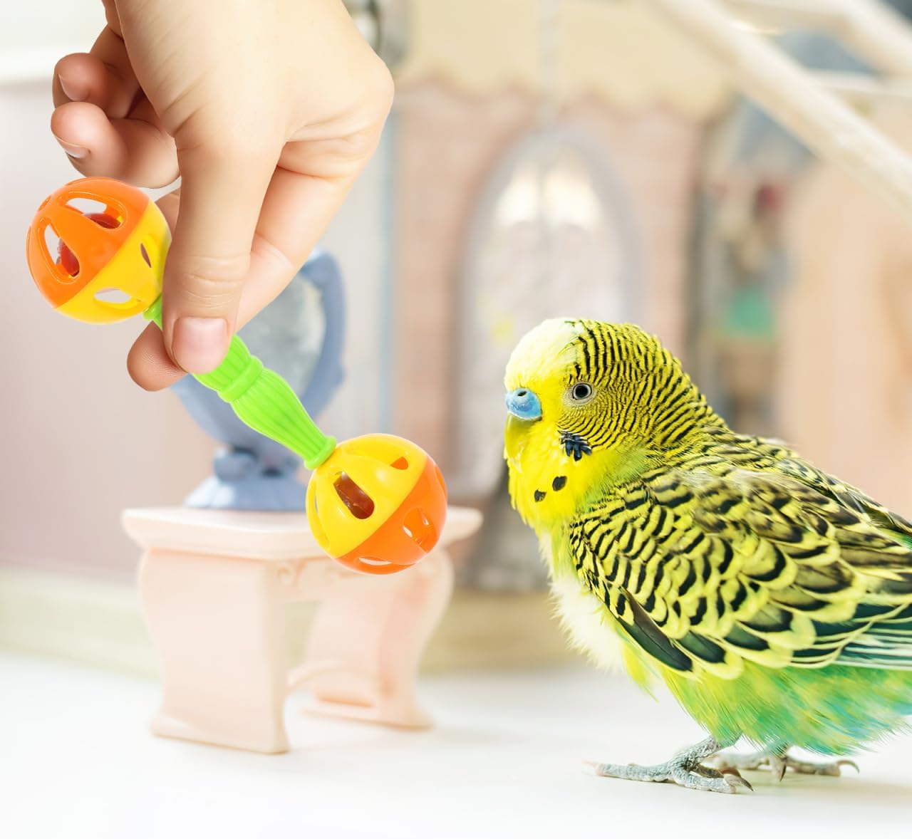 2Pc Enrichment Barbell Ball Toys Sand Hammer Shaker Rattle Conure Bird Toys Parakeets Conure Toys Chicken Enrichment Toys Bird Rattles Bells Foot Toys recreation Parrot infant