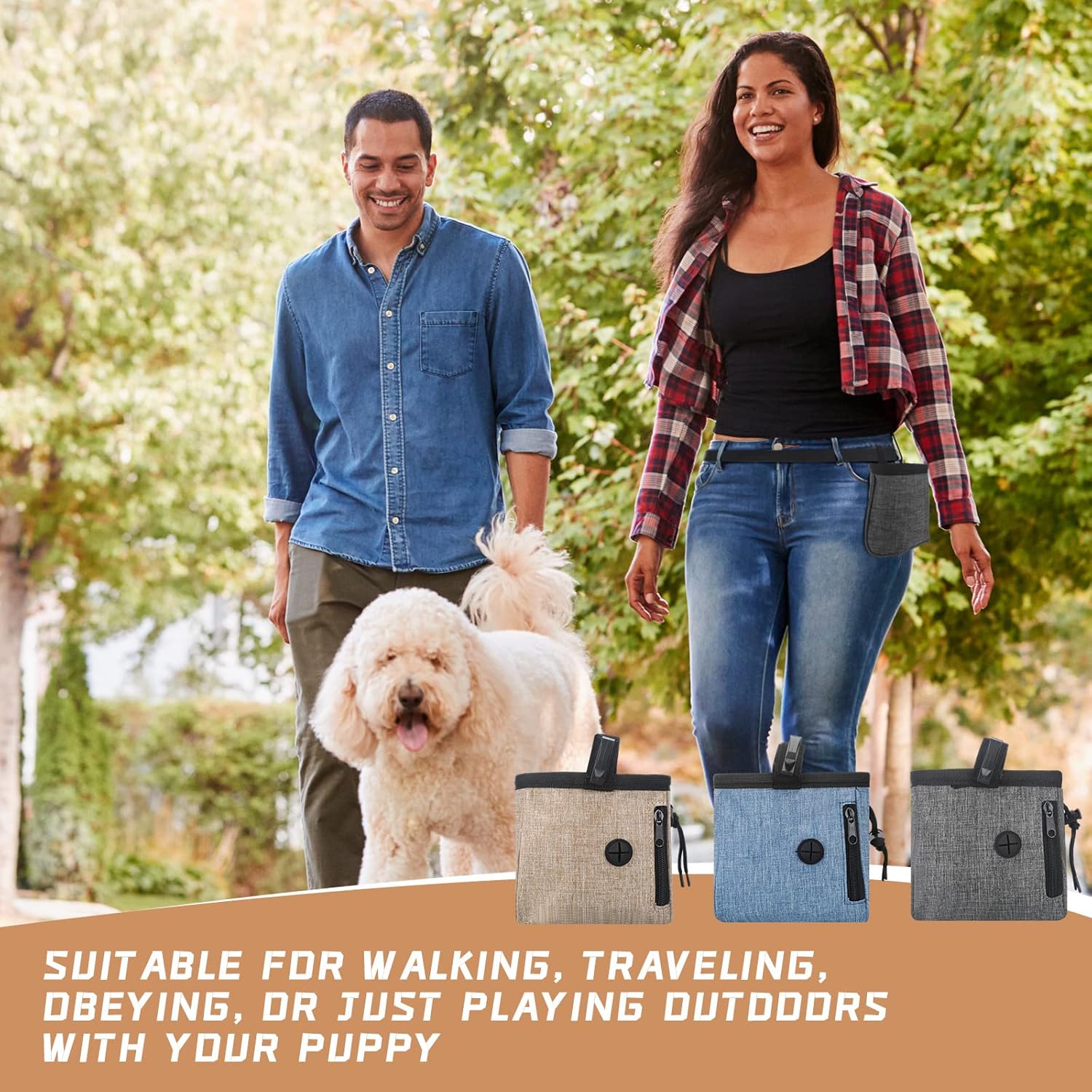 Training Goods: this dog treat pouch for training has a large capacity to put down toys, small objects, pet food and garbage bags, bringing you convenience