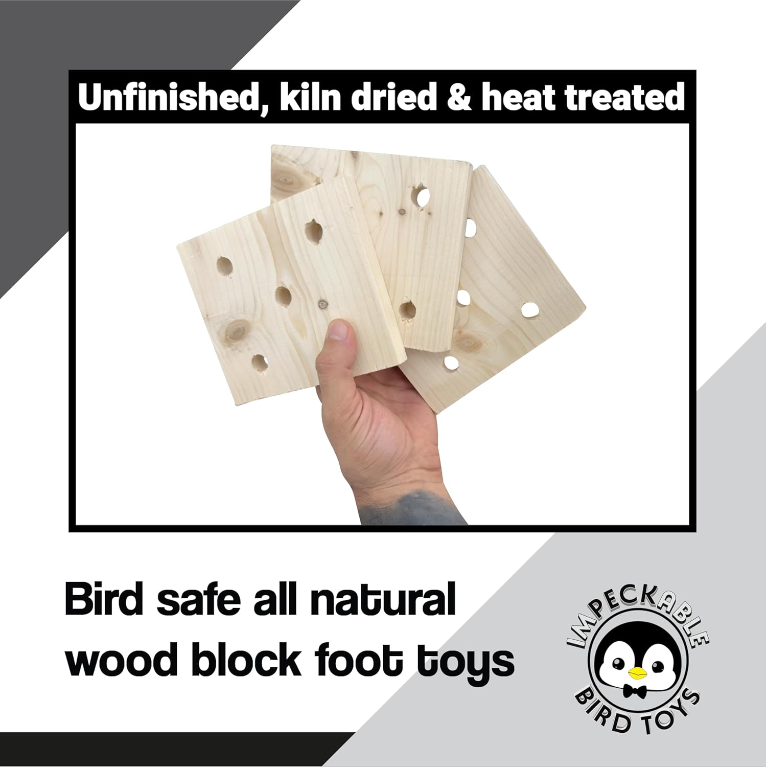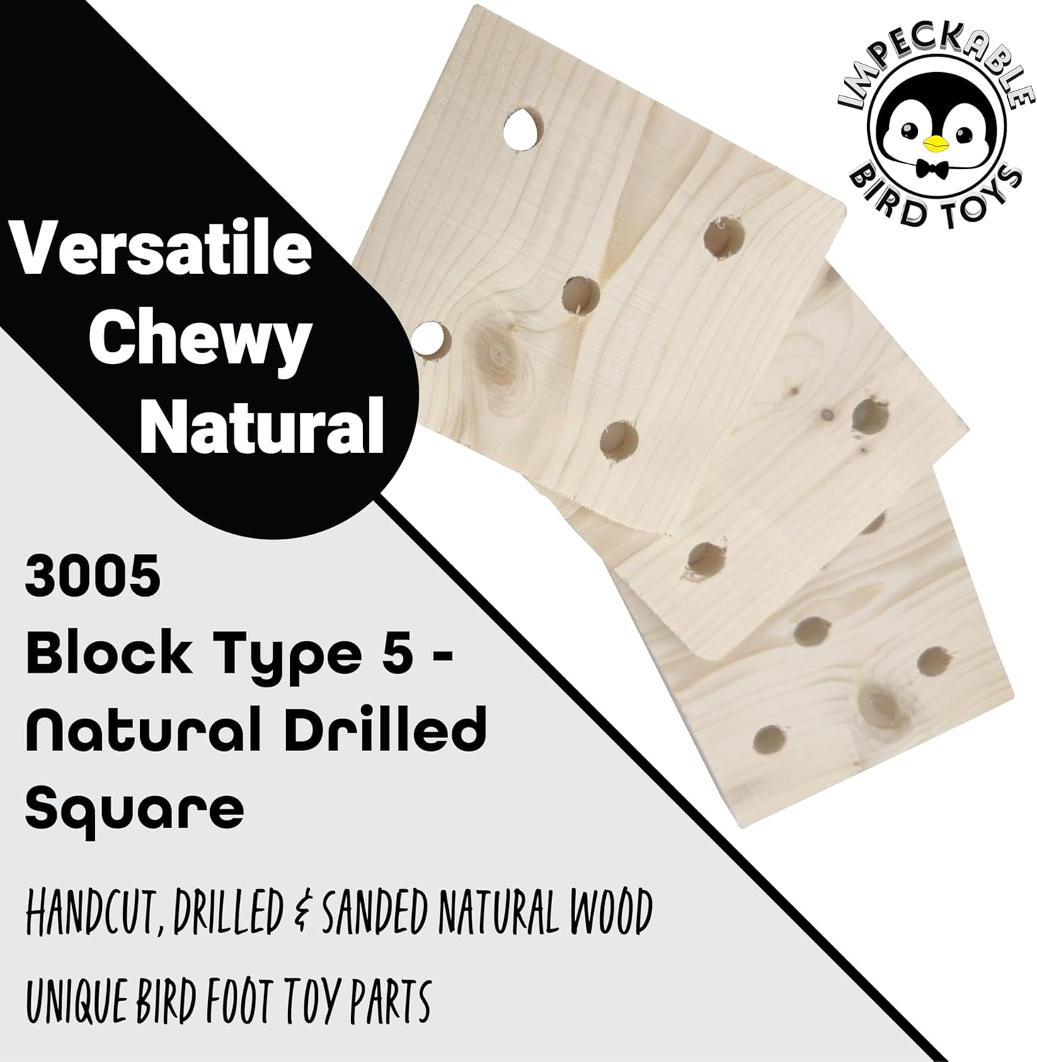 3005 Block Type 5 Natural Drilled Square Wood Bird Toy Part with 6 Holes Flat Wooden Base Handcrafted by Impeckable Bird Toys for Amazons Conures Caiques and Medium Size Pet Birds