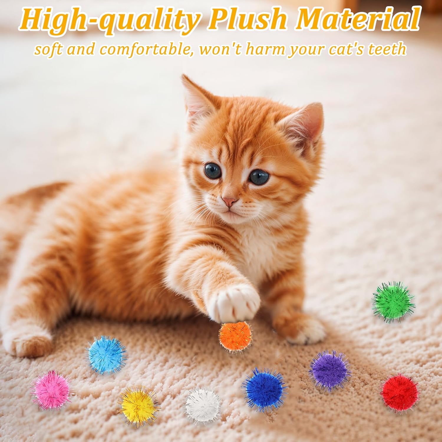 【Bright Colors】The cat toy balls come in multicolor designs with glittery trim, making them irresistible to cats. These pom poms will arouse your cat’s curiosity and interest, encouraging them to chase and play. The cat balls toys for indoor cats help burn excess energy, keeping your kitty healthy both physically and mentally.