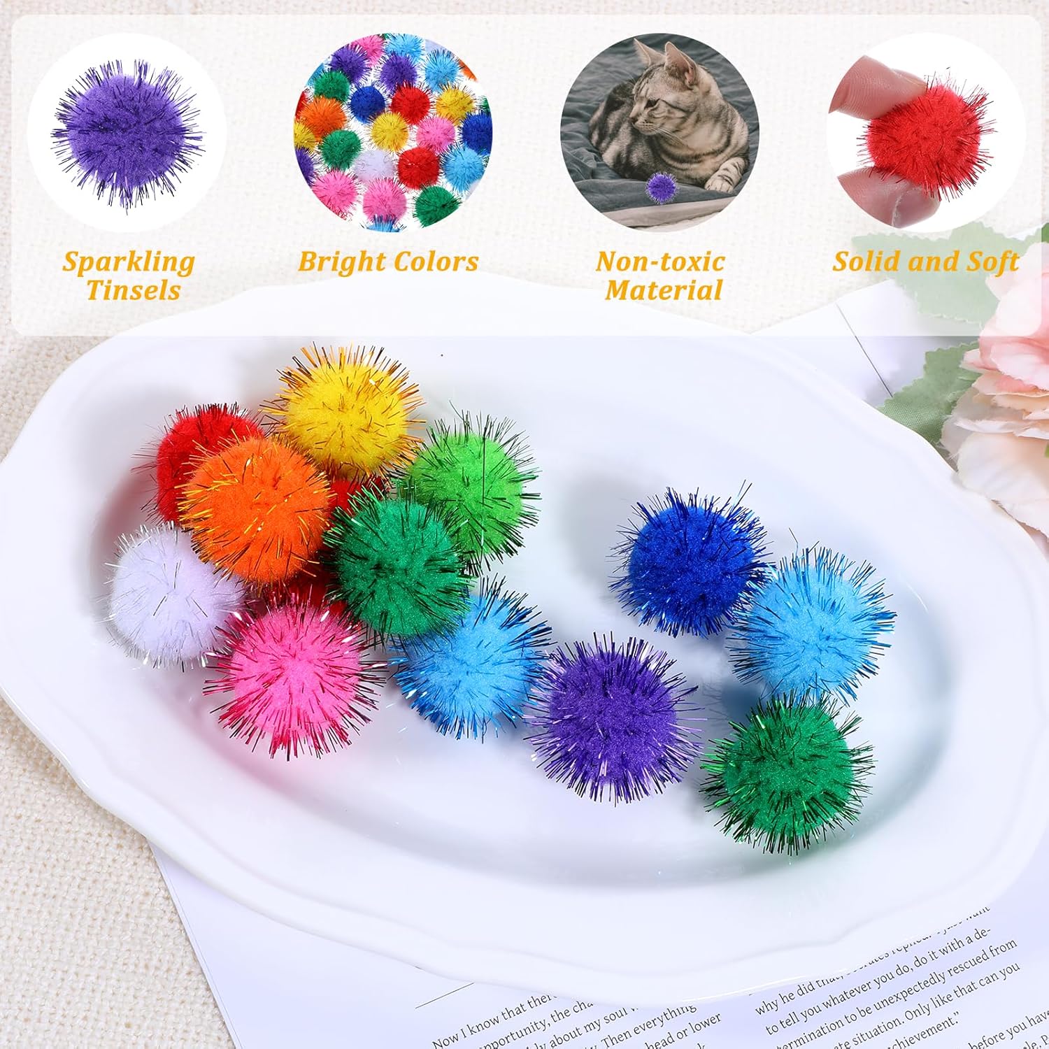 1.Bright Colors: The cat ball toys come in vibrant colors with glittery trim, making them irresistible to cats. These pom poms for crafts will arouse your cat’s curiosity and interest, encouraging them to chase and play.