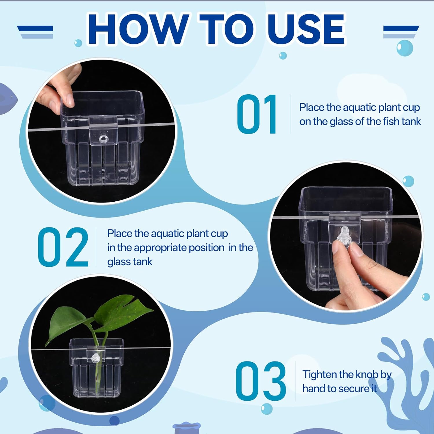 8PCS Clear Acrylic Aquarium Plant Holders with Adjustable Hooks – Top Hanging Fish Tank Cup Pots for Aquatic Plants, Aquaponic Cultivation & Aquascape Decoration (3.15×3.15×2.24 Inch)