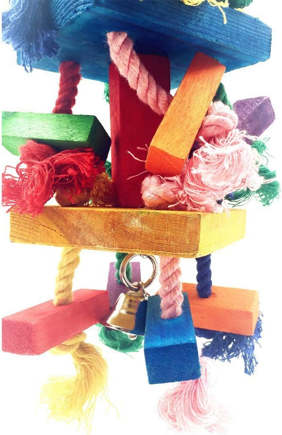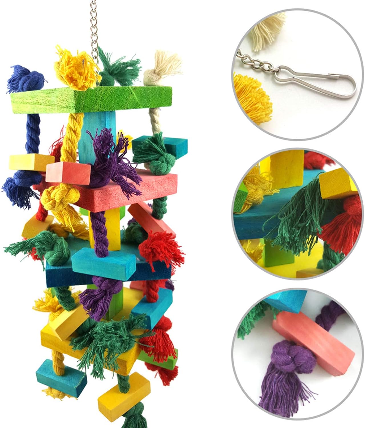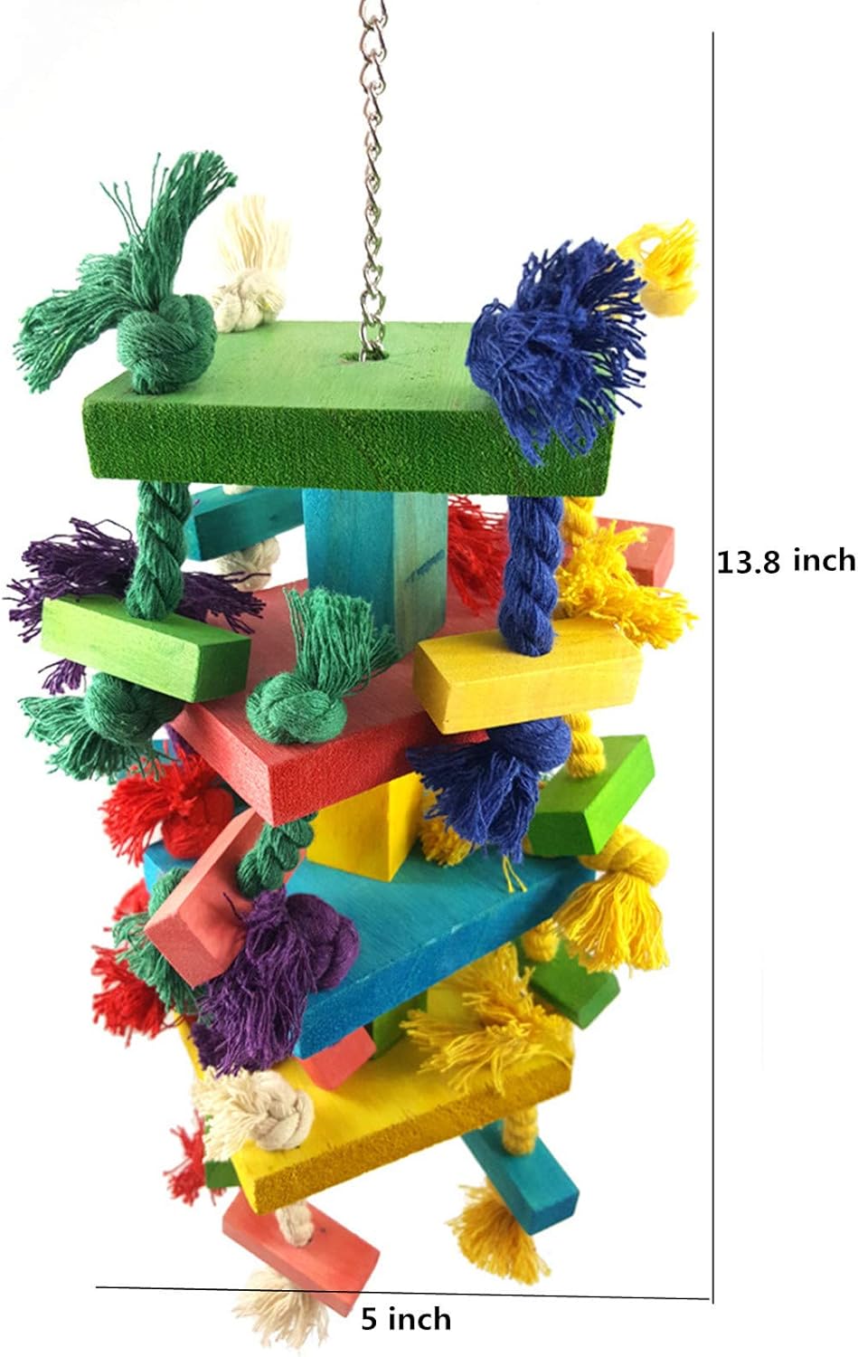HFBlins Bird Parrot Knots Block Tearing Chewing Toy, Multicolored Wooden Bird Parrot Toy for Macaws cokatoos, African Grey and a Variety of Amazon Parrots (Large Size – 13.8 Inch)