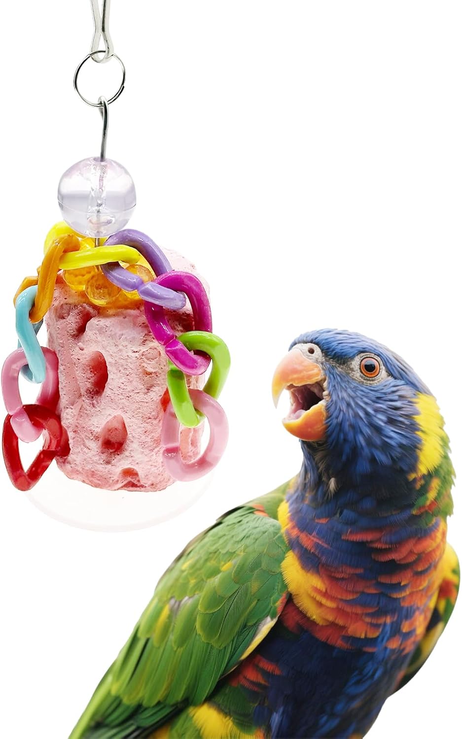 Parrot chewing toy made of porous mineral stone, rich of calcium for pet’s health while grinding bird’s beak.