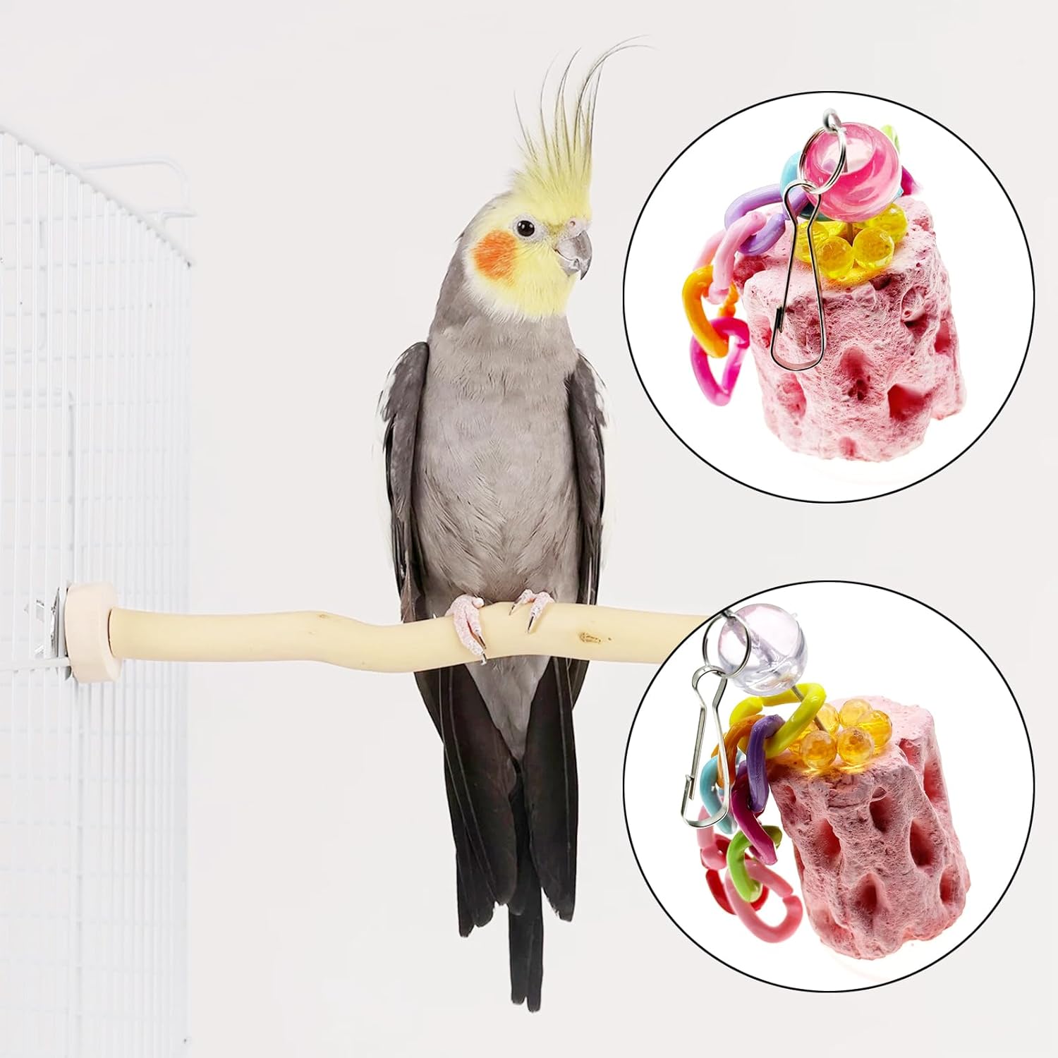Allazone 2PCS Pet Teeth Grinding Stone and Perch, Natural Chewing Toys for Small Medium Birds Budgies Conures Cockatiels Rats, Tree Root Shape