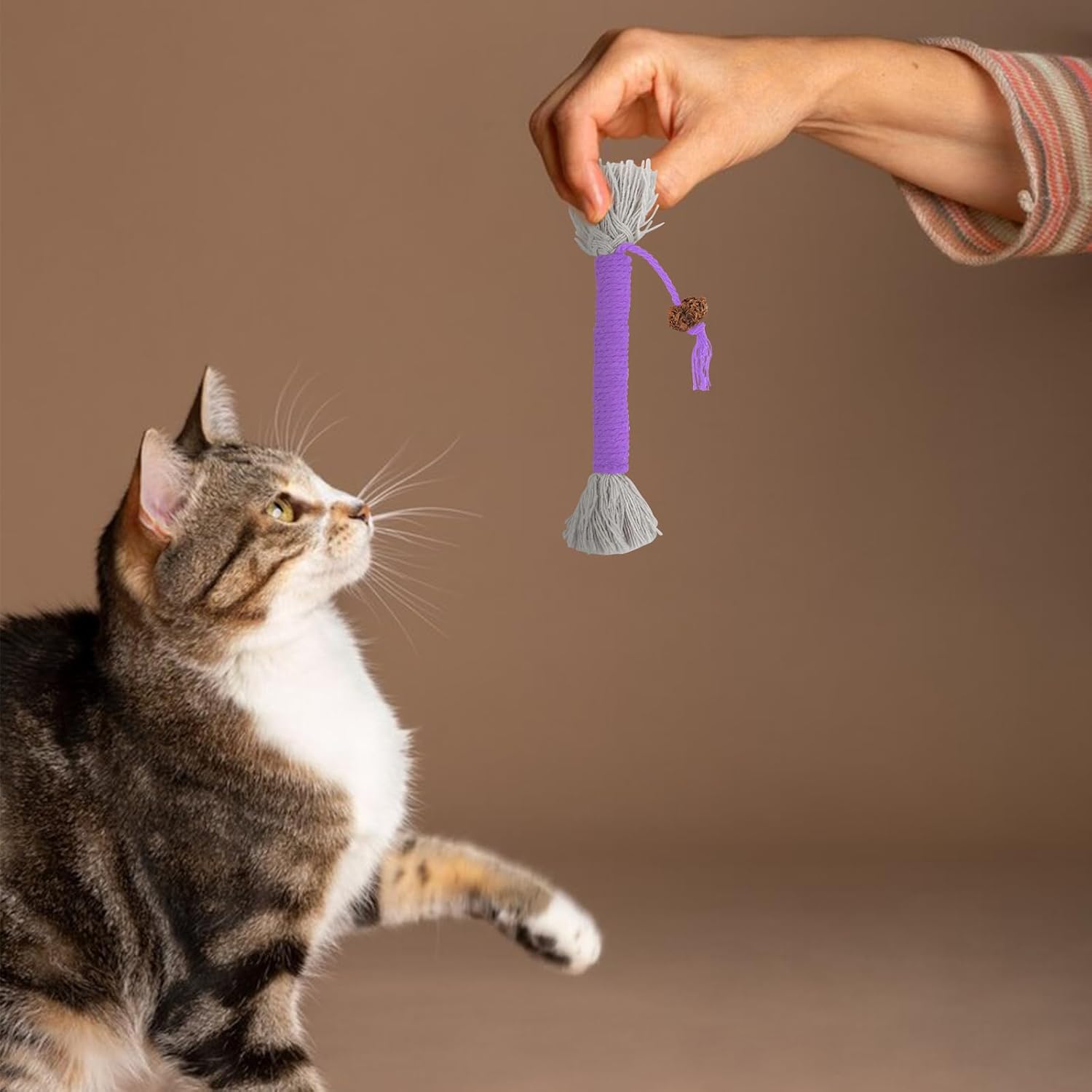 Cotton Rope and Gall Fruit Crafted: The cat teething toys are carefully crafted from twisted cotton rope, and the tassel pendant is natural gall fruit. It has no steel wire inside to ensure the safety and health of your cat, let your pet enjoy the fun