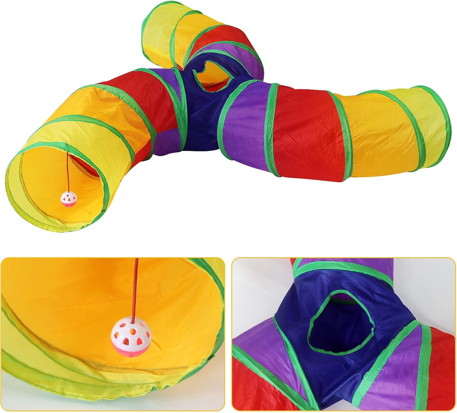 Bemodst S-Shape Cat Tubes and Tunnels – Large Collapsible Kitty Tubes for Indoor Cats, Small Dogs, Ferret, Rabbit (Colored 3-Way)