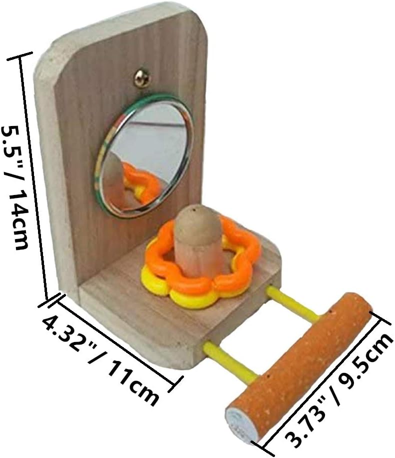 Bird Mirror Bird Swings Wood Perches Cage for Parrot Parakeet Budgies Cockatiel Conure Finch Lovebird Wood Stand Perch (Color Random)