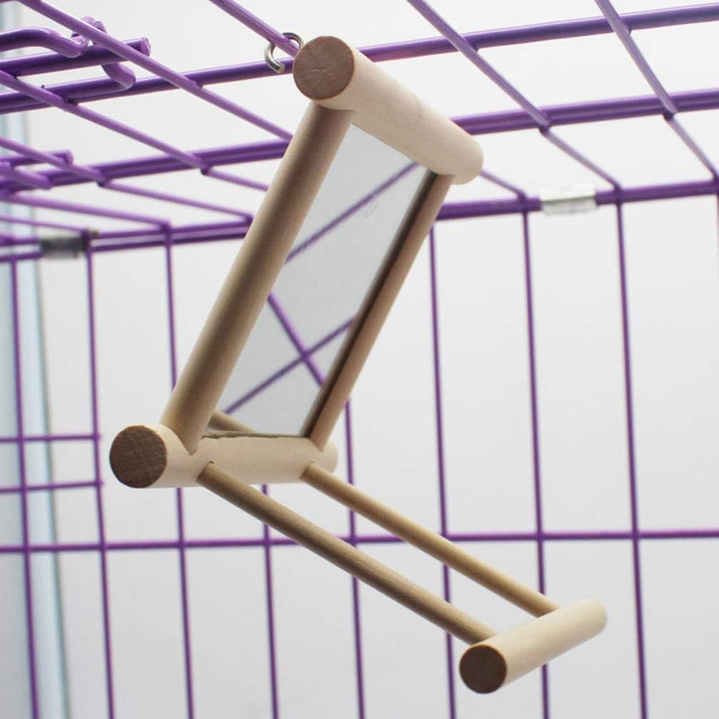 Bird Mirror with Perch Wooden Hanging Swing Toy,Natural Wooden Play Toys, Pet Bird Cage Accessories with Metal Hook for Parrot Budgie Parakeet Cockatiel Conure Lovebird