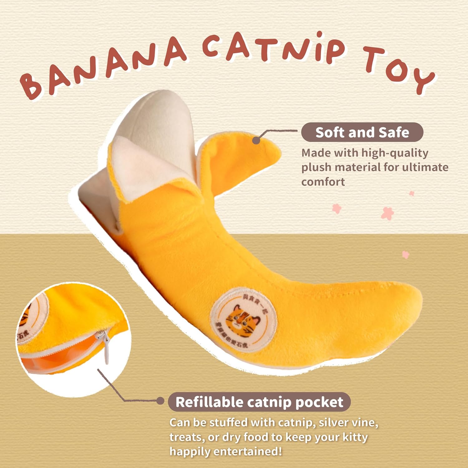 BLUE BAY Banana Catnip Toy w/refillable Zipper Pouch, Catnip Bag Included