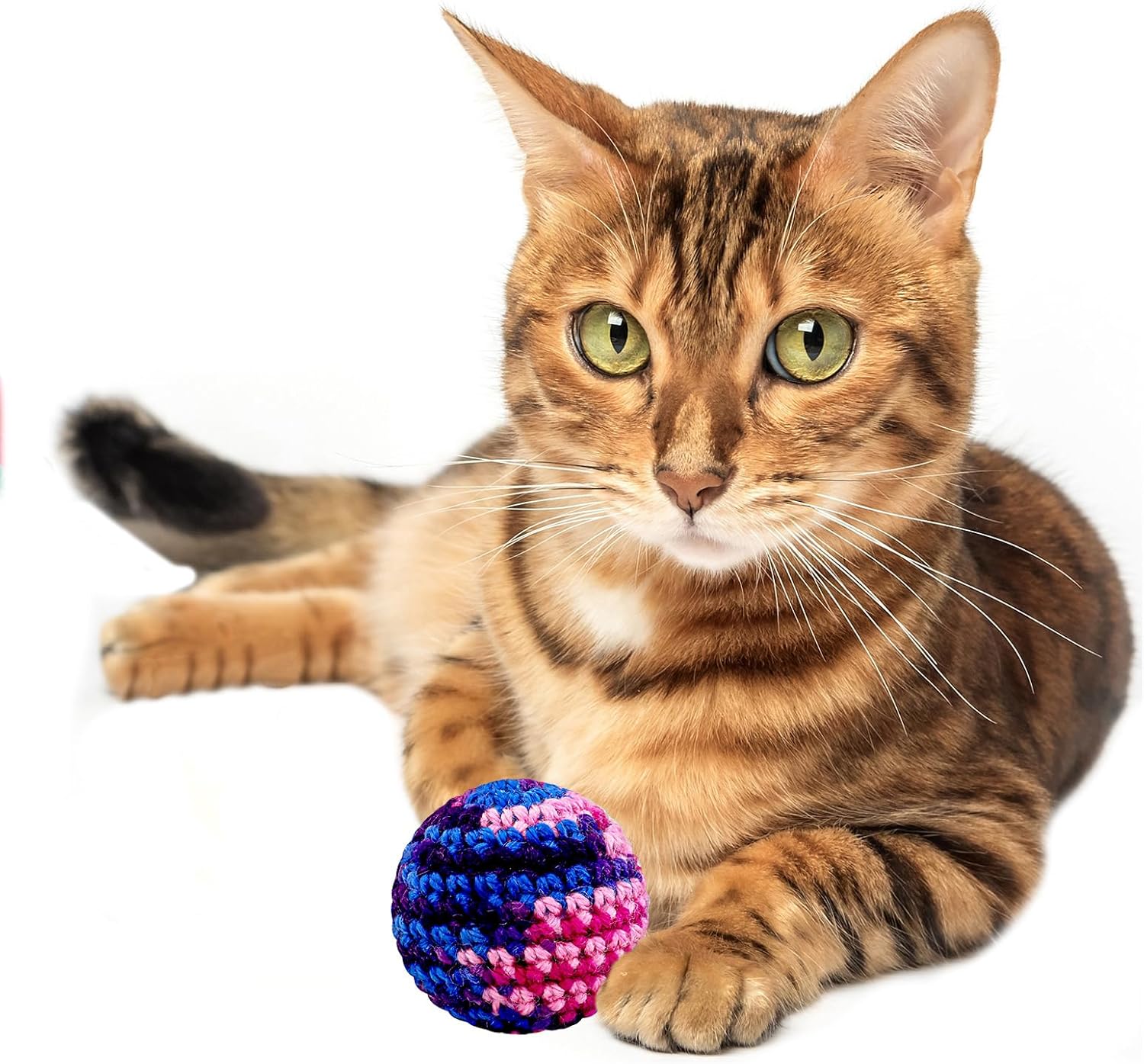 (√) HANDMAED CAT BALL TOYS – Kitten Balls Toys are is handmade knitted by pet loving worker. These interactive colorful cat chew toys allow your cat to engage in various forms of play, whether it’s chasing, flipping, rolling, or carrying them around, this toy offers constant stimulation to your cat’s instincts.