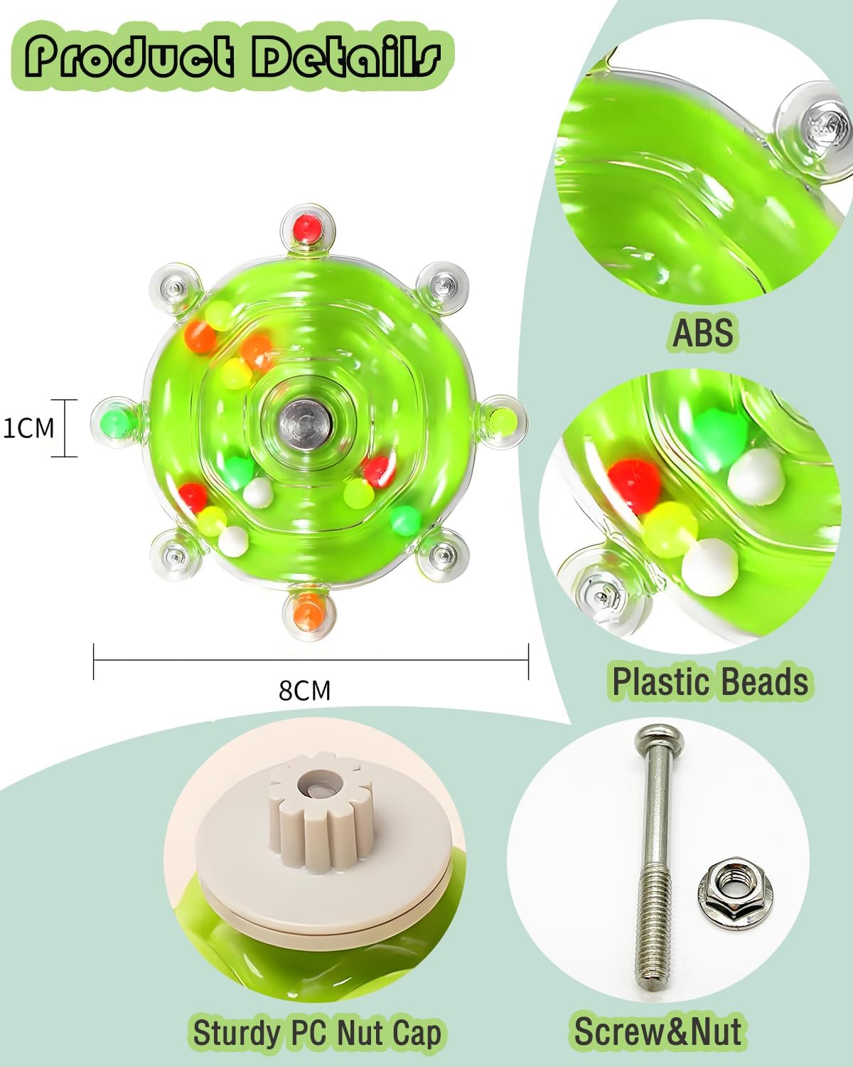 Promotes Activity: The interactive design encourages birds to play, forage, spin and exercise. The insided colorful beads can make sounds along the track when spinning the toy to interest your birds’ curiosity to play, help to prevent boredom and feather plucking.