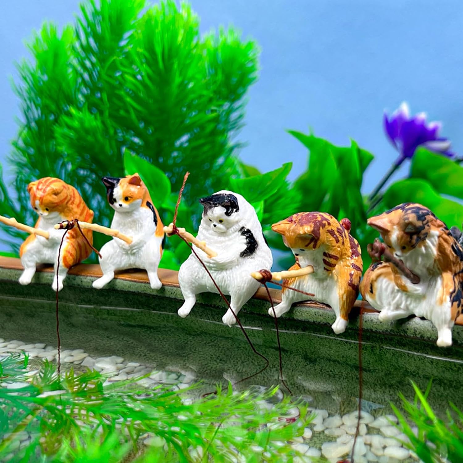 Cute Design: Cat aquarium fish tank toy’s shape is cute and novel, with various cats fishing and realistic colors, which can bring a cute and interesting atmosphere to your aquarium, attract everyone’s eyes, and stand out.