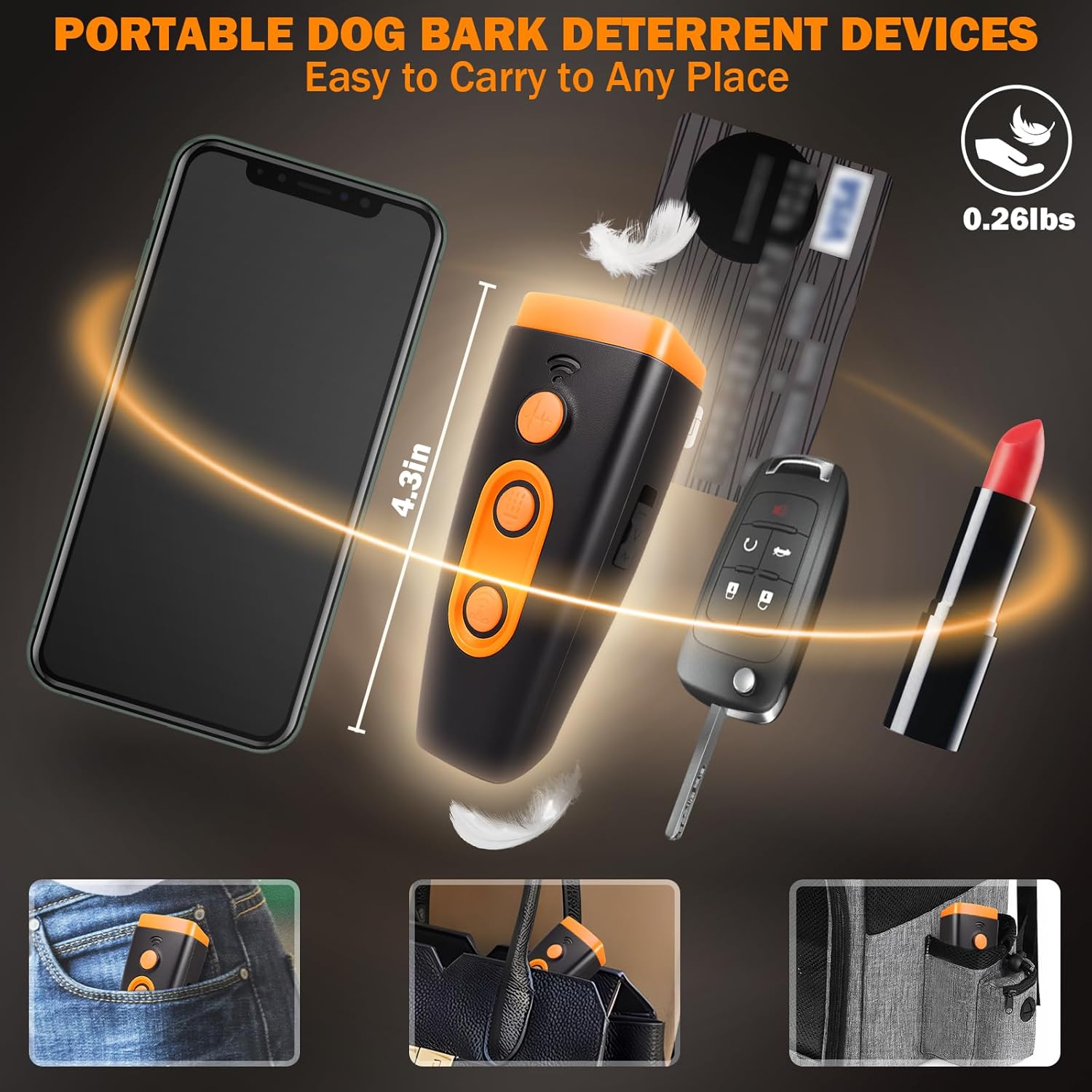 PORTABLE DOG BARKING SILENCER WITH WIDE 35FT RANGE: Gain reliable control wherever needed! This lightweight and ultra-portable stop barking dog device is perfect for walks, travel, or home use. Its strong ultrasonic deterrent effectively reaches dogs up to 35ft away, ensuring consistent bark control device performance indoors, outdoors, or in the yard