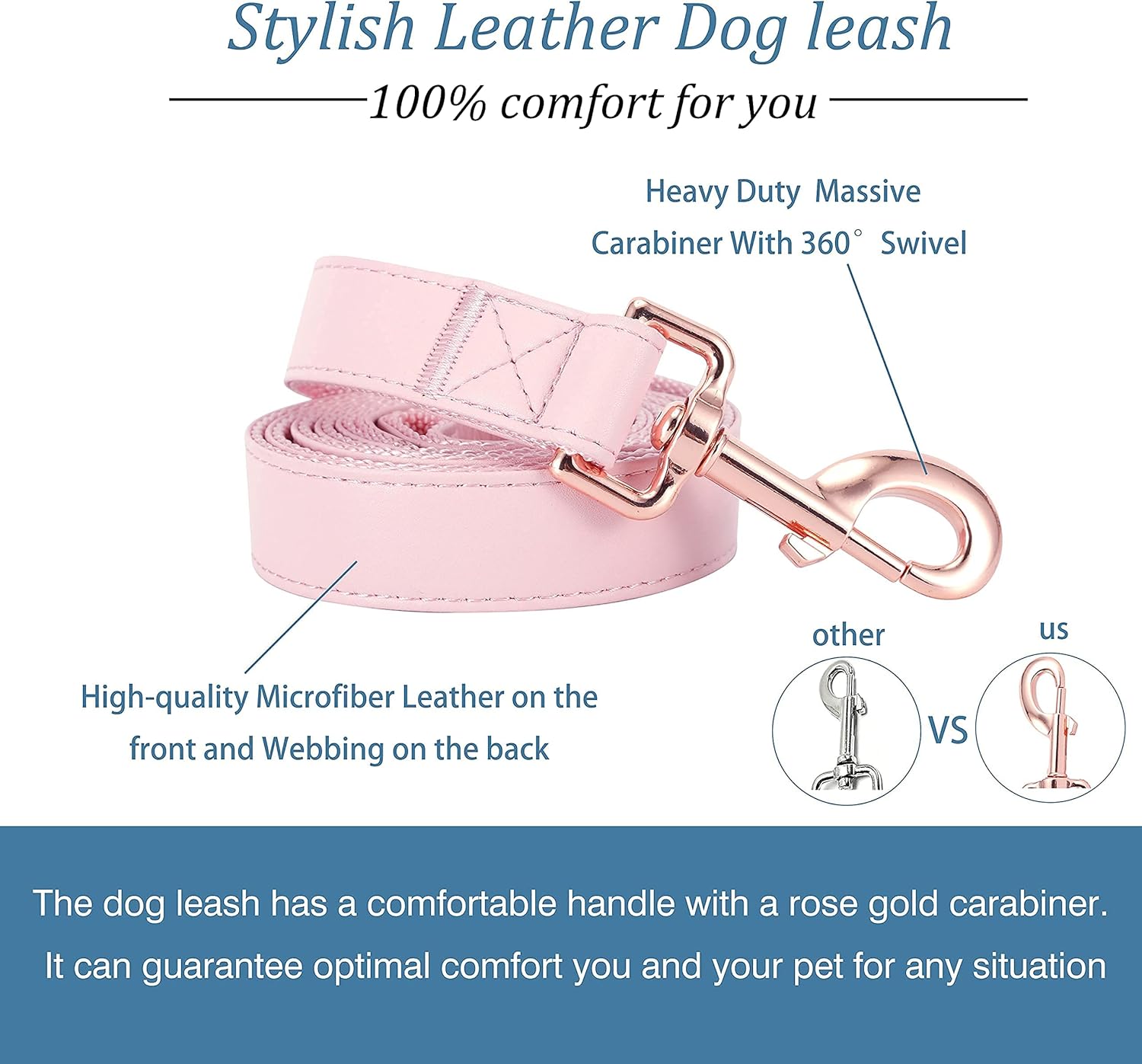 [BEAUTIFUL STYLE]:The color of rose gold has a very nice metallic luster, combined with microfiber leather, the two are a perfect match, no matter from which angle they are viewed, they are very beautiful, and they are the best choice for beautiful dogs.