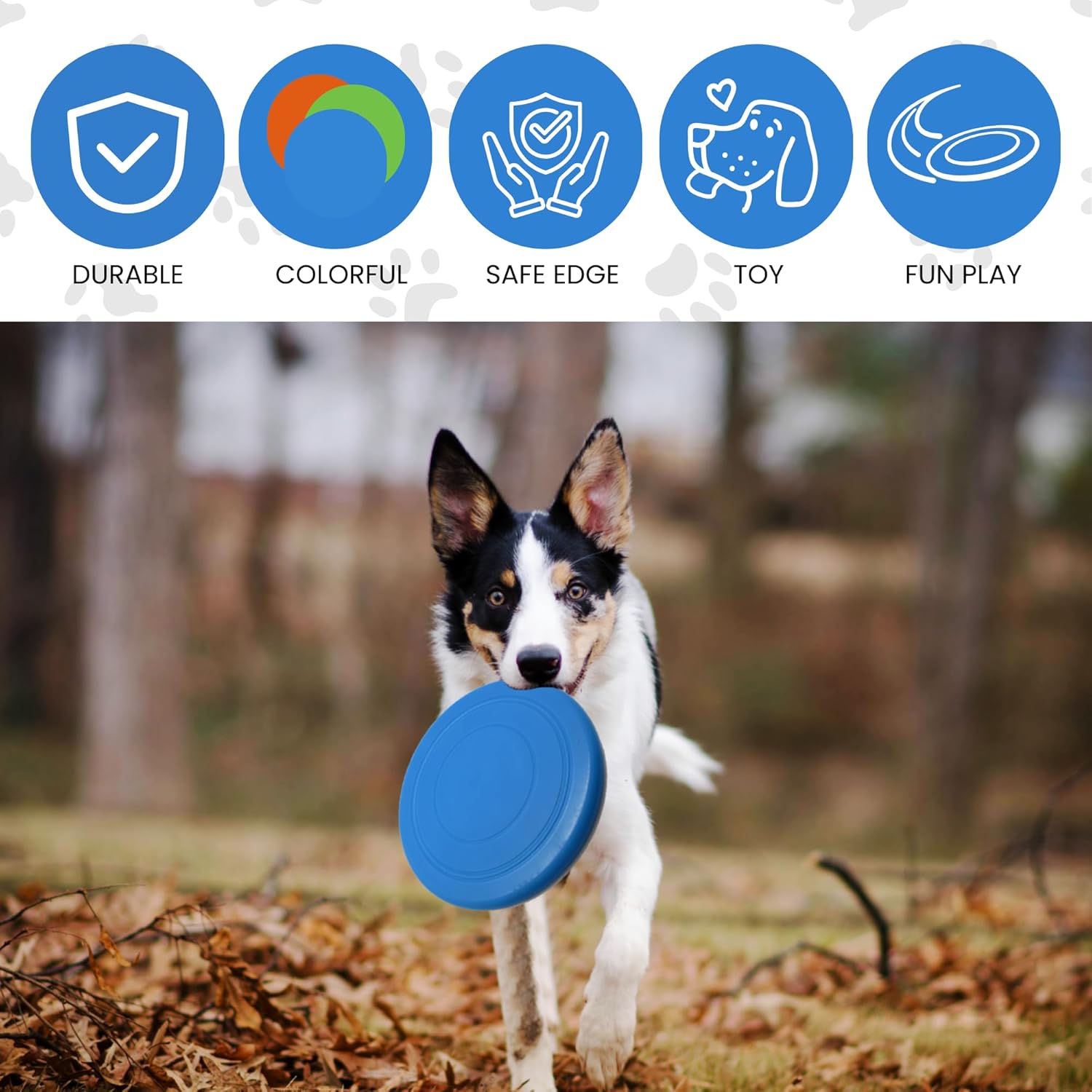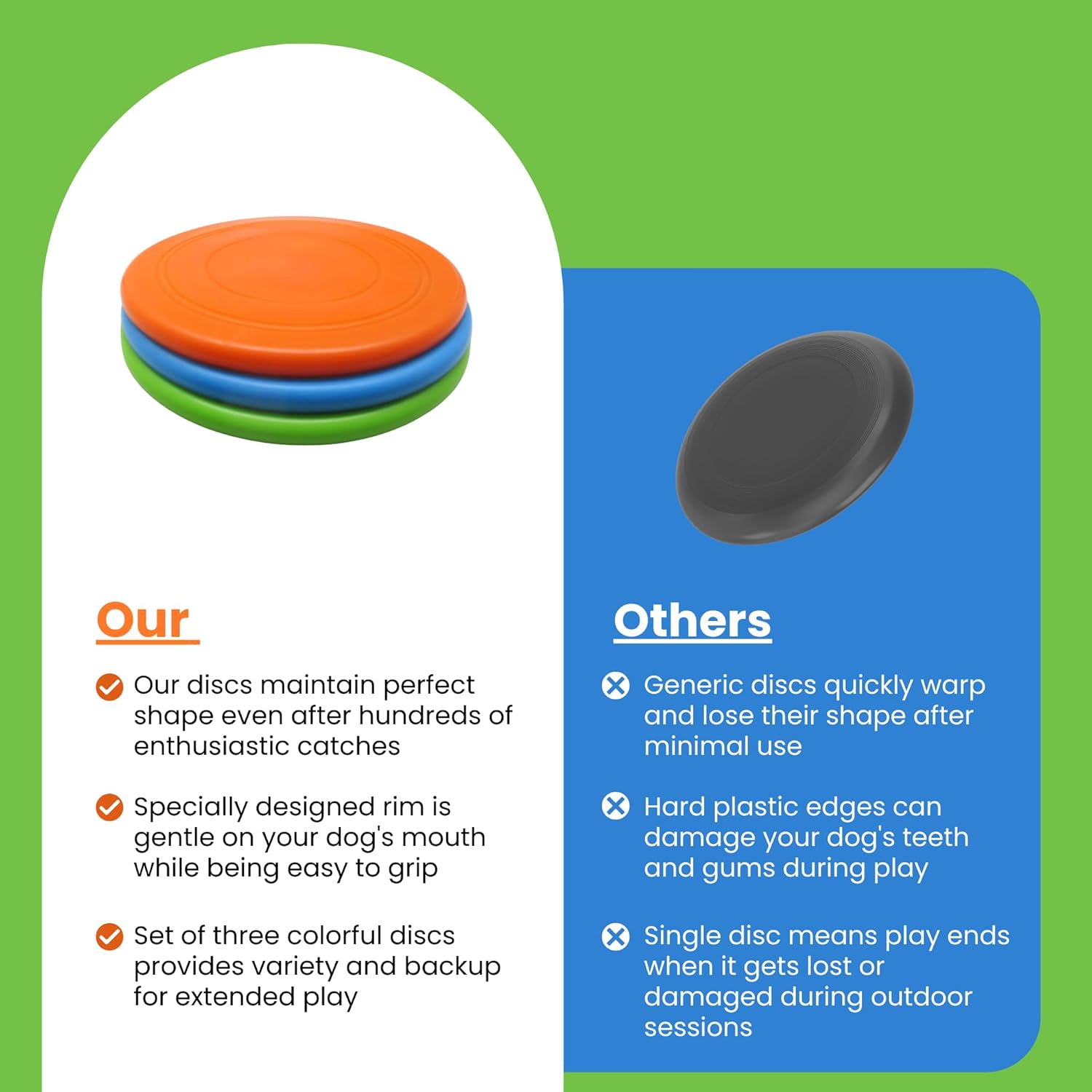 Dog Flying Disc – Pack of 3 Pet Frisbees + Durable Outdoor Dog Toys for Training and Exercise – Interactive Fetch Discs – Blue, Green, and Orange Colors