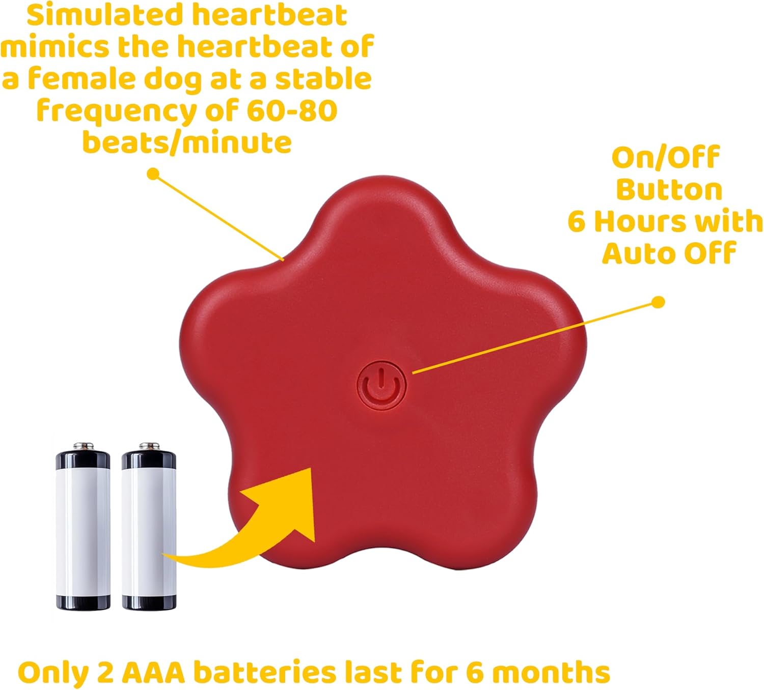 Plush Toy + Realistic heartbeat: The Plush toy with simulated heartbeat is automatically set for 6 hours each time, avoid replacing the batteries too often and making the batteries last longer. Hidden heartbeat switch prevents accidentally turned off by pup. 2 AAA batteries provide up to 6 months of use for the heartbeat.