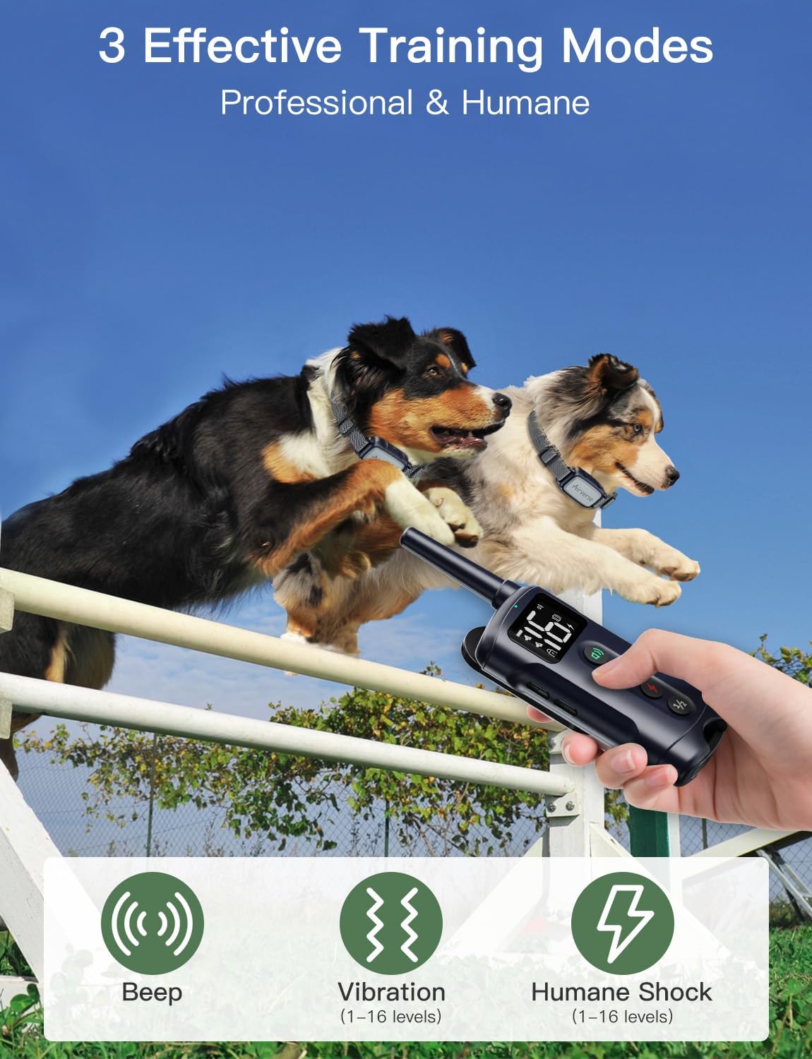 Dog Shock Collar – 3300 ft Waterproof Dog Training Collar with Remote, 3 Modes Electric Dog Training Collar,Beep/Vibration/Humane Shock 1-16 Levels (Dark Blue, 2-Pack)