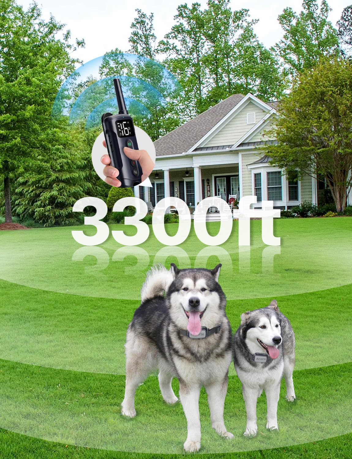 【𝟑𝟑𝟎𝟎𝐅𝐓 𝐑𝐚𝐧𝐠𝐞 & 𝟐 𝐂𝐡𝐚𝐧𝐧𝐞𝐥】The dog training collar covers up to 3300FT allowing the dog to roam farther, making it easy to train your dog indoors or outdoors. With dual-channel, one remote supports 2 receiver collars, and you can train 2 dogs at the same time