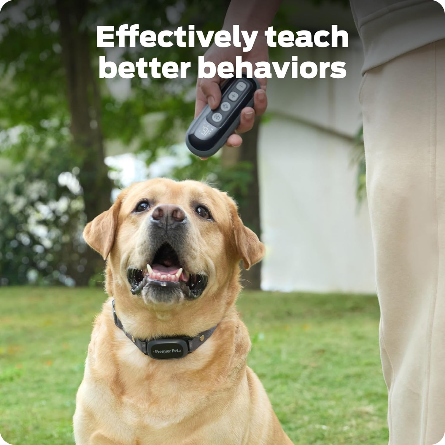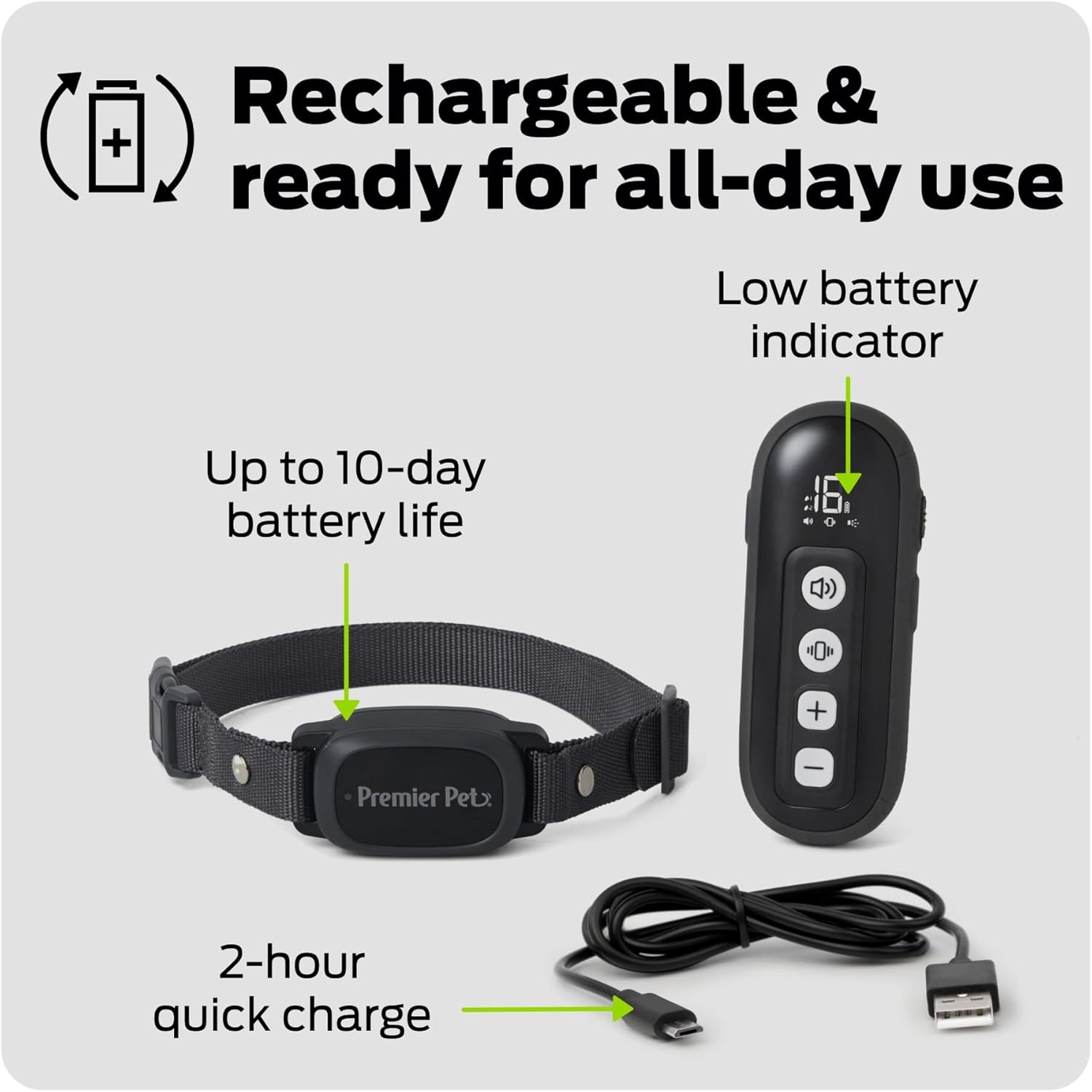 Introducing the Premier Pet 1000 Foot Trainer, a reliable solution to help you effectively correct unwanted behaviors in dogs of all sizes. This advanced training tool ensures clear communication and consistent enforcement of rules in a way that your dog can easily understand. With a user-friendly remote featuring an LCD display, you can tailor the training experience to your dog’s specific needs with three safe modes: tone, vibration, and 16 levels of static stimulation. The rechargeable, waterproof collar includes an adjustable nylon strap, accommodating dogs with neck sizes up to 28. Its durable and versatile design is perfect for off-leash walks around the park or long hikes with your dog. The low battery indicator and quick 2-hour recharge ensure your training sessions are never interrupted. Expandable to train up to two dogs with the purchase of an Add-A-Dog Collar, the Premier Pet 1000 Foot Trainer is the ultimate tool for dog owners who seek reliable and long-range training solutions.