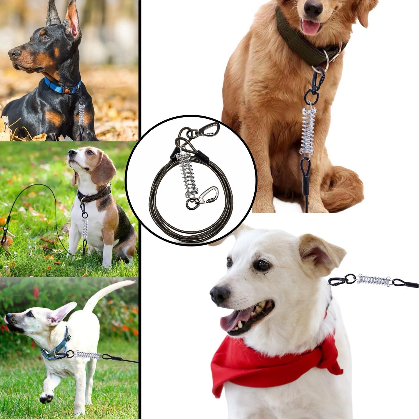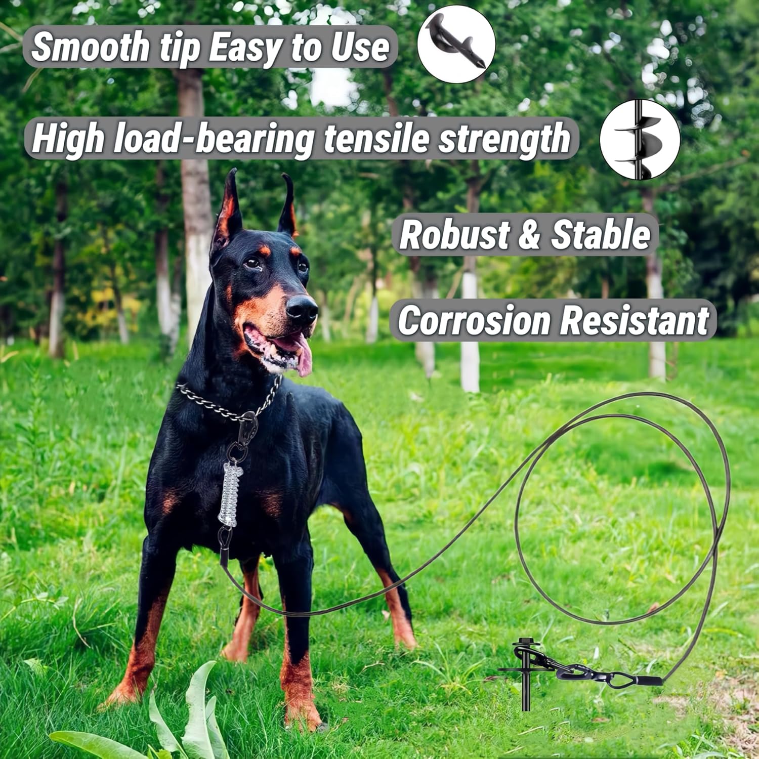 ✅Secure Spiral Stake and Shock Absorber The spiral design anchors firmly into solid ground (not for loose sand), while the shock-absorbing spring reduces sudden tension to protect your dog’s neck.
