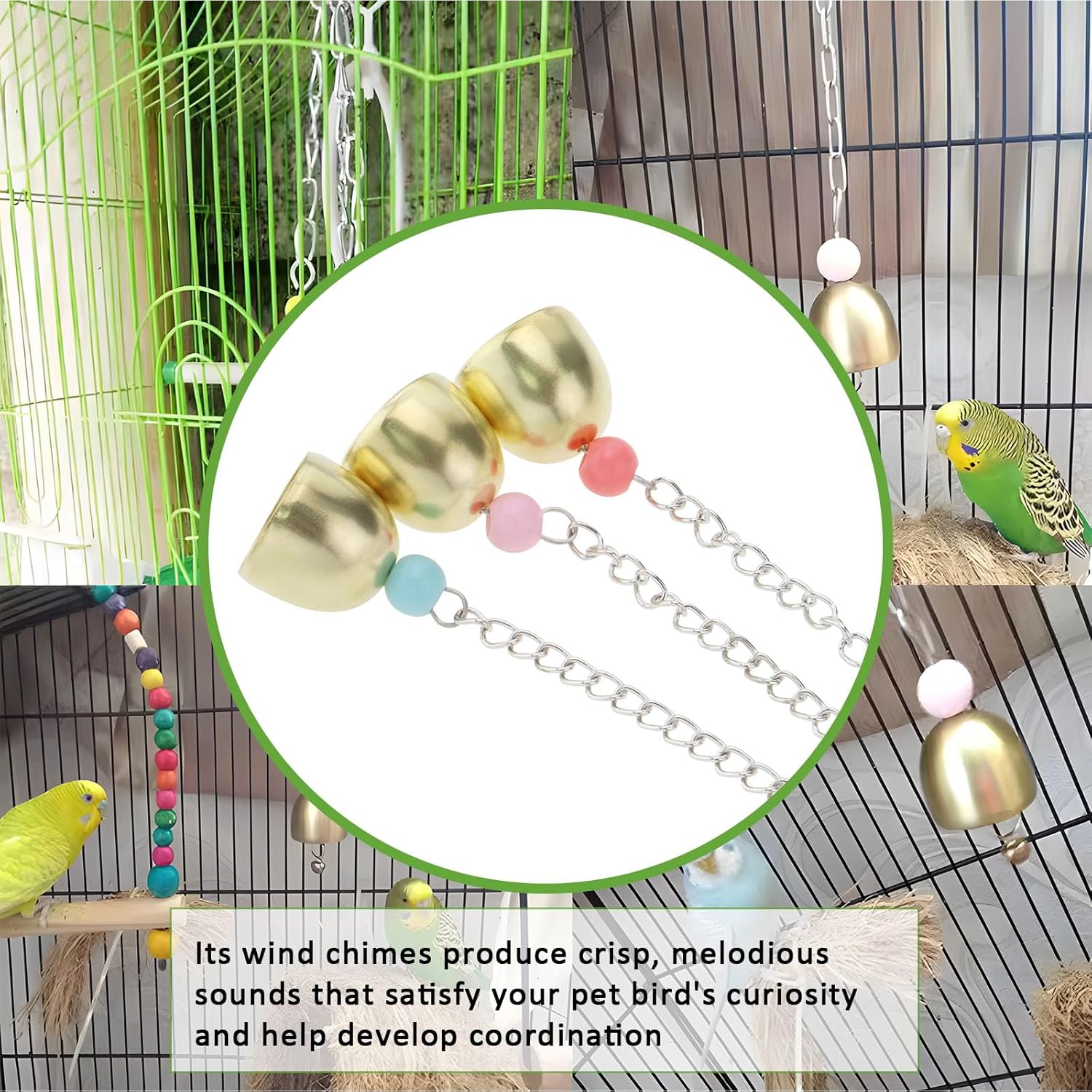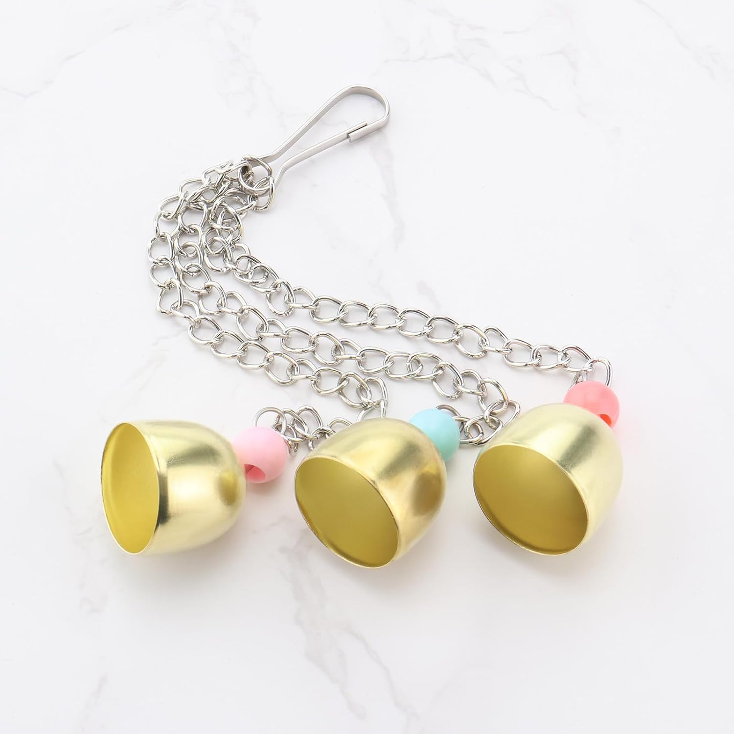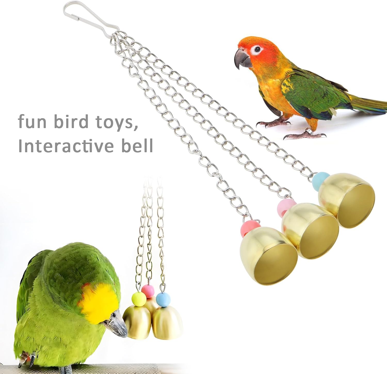 eMagTech 3PCS Parrot Alloy Bell Toys Bird Interactive Chain Metal Bell Toy for Cockatiels Conures and Lovebirds Hanging Bell Bird Activity Stand 23.5cm