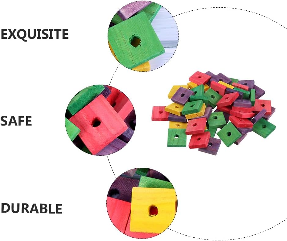 FRCOLOR Parrot Bird Toys 50Pcs Parrot Wooden Chewing Toys Mixing Colors Wood Blocks Bird Chewing Trim Mini Wood Chip Charms DIY Playtime