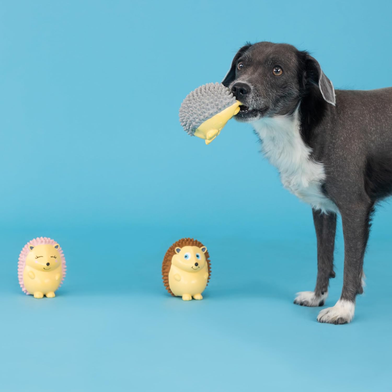 3 Toys in one! Each Toy Approximately 4” x 3” (Pink Hedgehog: 4″ h x 3″ w x 3″ d, Brown Hedgehog: 4.25″ h x 3″ w x 3.5″ d, Grey Hedgehog: 2.5″ h x 3″ w x 4″ d)
