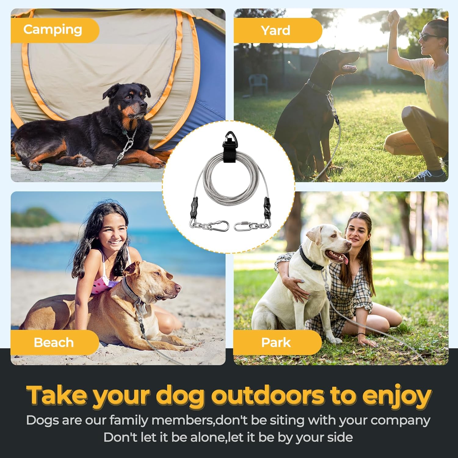 Swivel without tangles: 360 degree swivel buckle on both sides of this tie out cable for dogs ensures no more kinks or tangles,Ensures safety and longevity