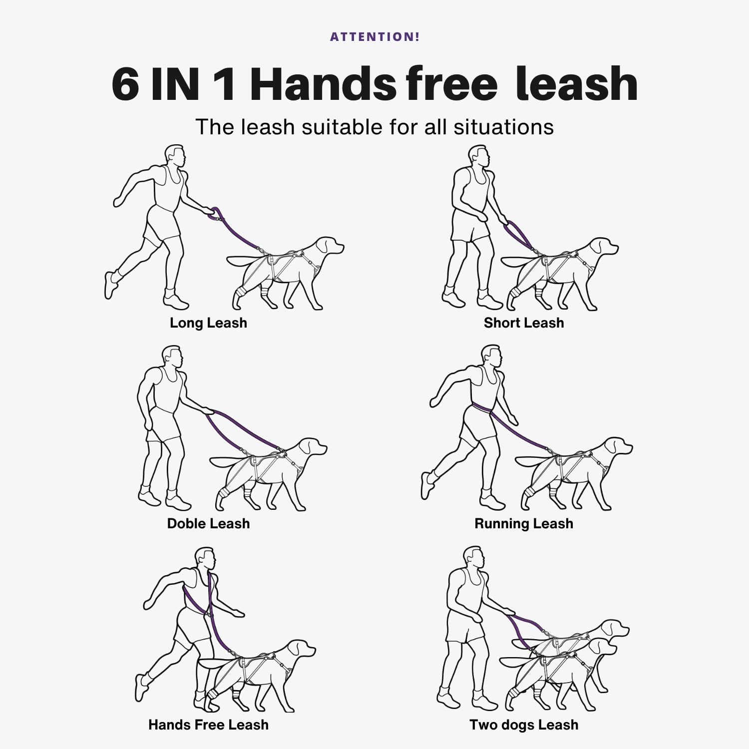 [6-in-1 Hands-Free Design] This versatile leash offers six different styles in one, adjustable from 4 to 7.5 feet. It supports hands-free options, including waist-wearing, cross-body, and a dual-dog (couple) mode, providing comfort and convenience for you and your dog