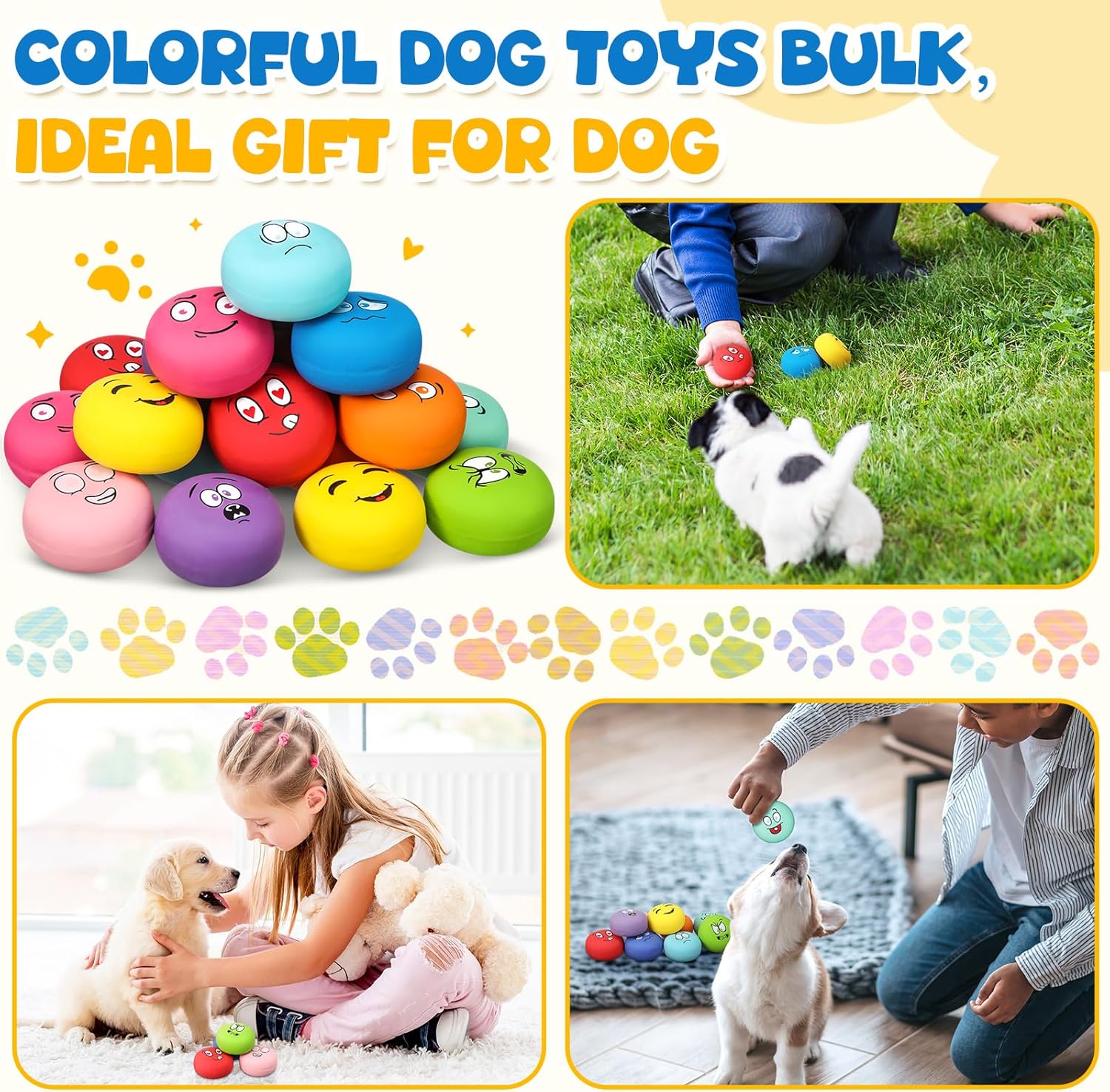 Hungdao 40 Pcs Bulk Dog Squeaky Toys Soft Rubber Latex Dog Toys Small Squeaky Balls Interactive Fetch Balls for Teething Small Pet Breeds Training(Funny Face)