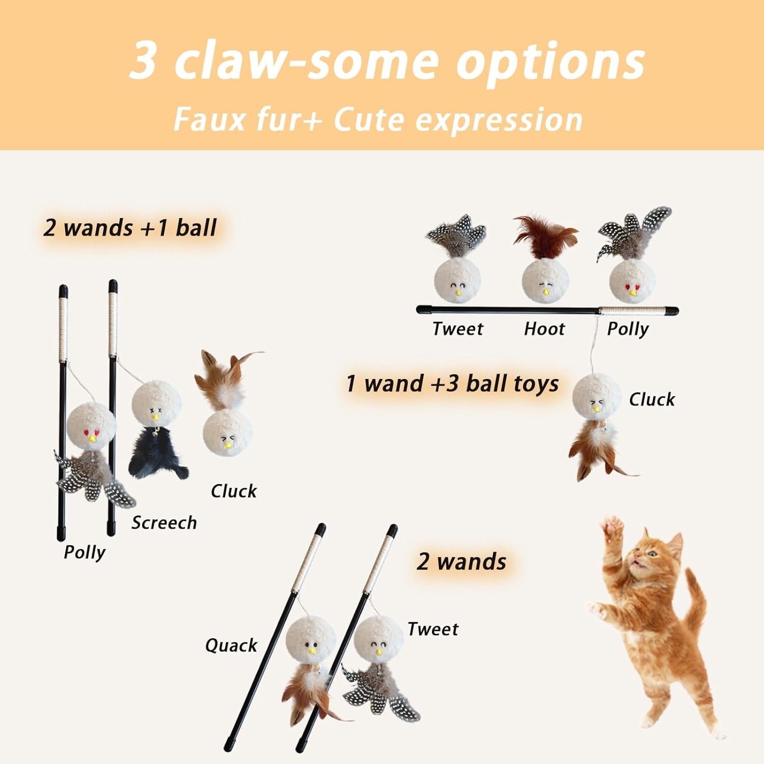 Premium Featherballs cat toy: Crafted with thick, durable plush. Features stimulating feathers, a jingle bell, cute bird faces & irresistible catnip. Perfect for interactive play with the wand or solo batting fun!
