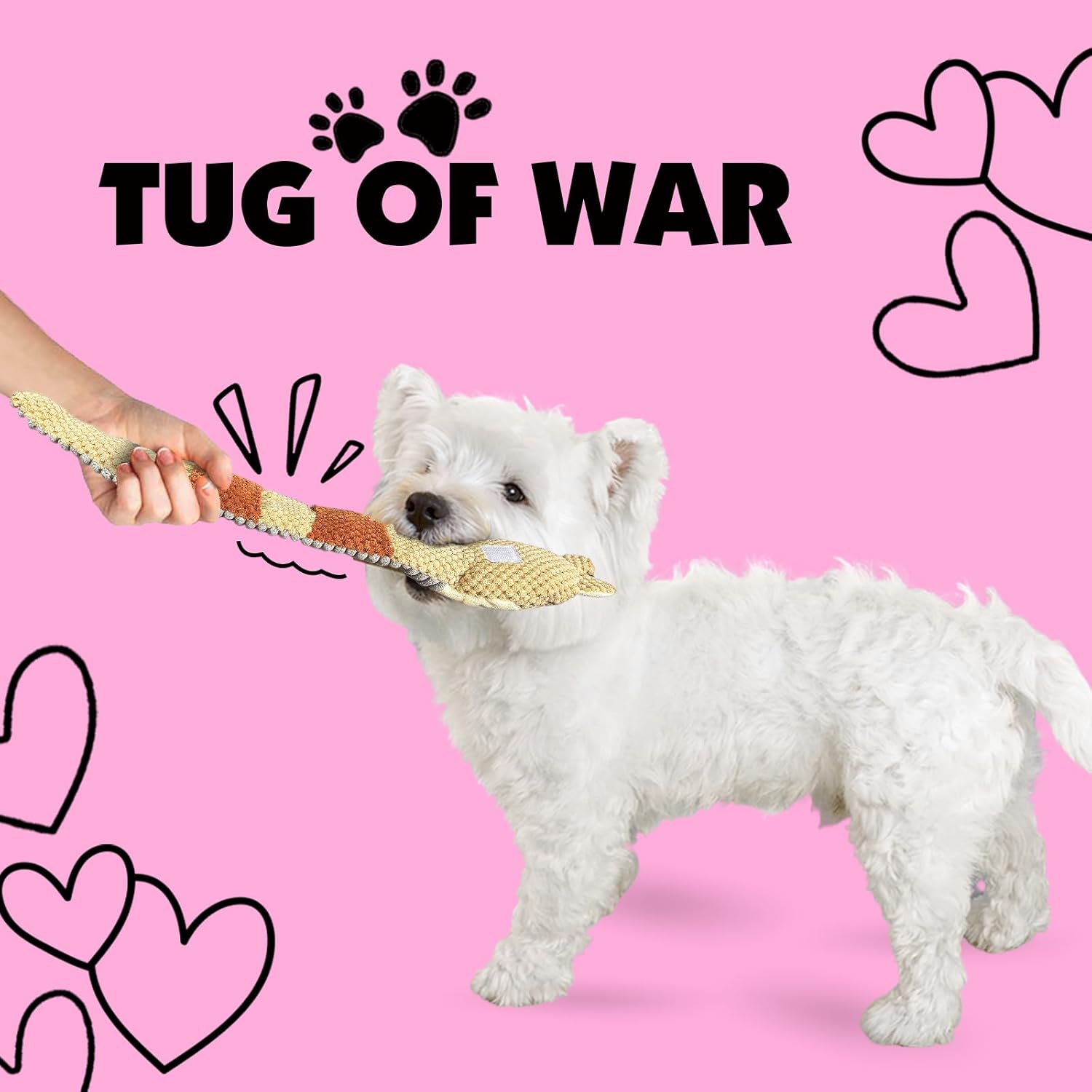 Tug-of-War Dog Toys: When stretched out, this squirrel’s long body is perfect for playing tug-of-war. With its tough fabric and reinforced stitching, it can handle even the strongest tugs from multiple active dogs, making it ideal for dogs to burn off energy and stay entertained. Or, why not start a tug-of-war with your pup tonight to see who’s the winner