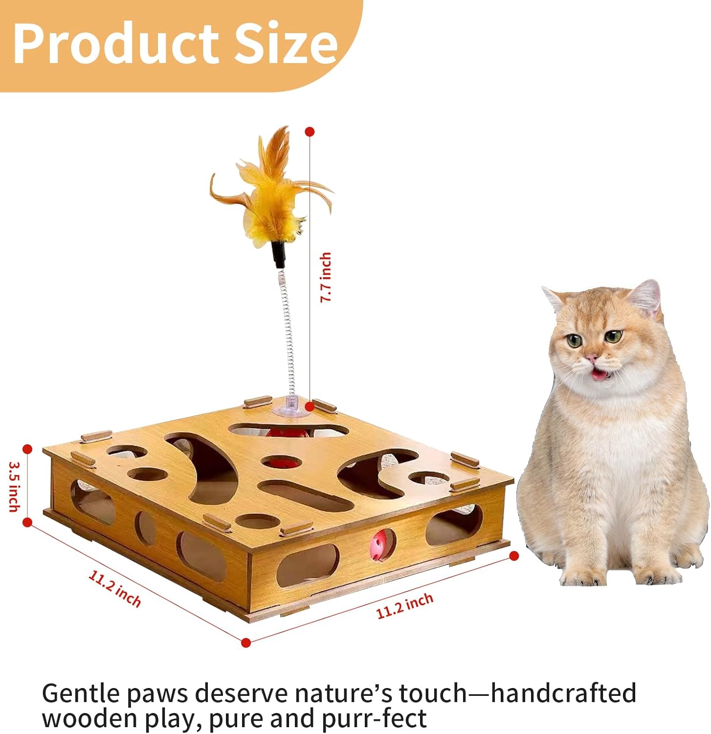 【Safe, Stylish & Durable】 Made from eco-friendly wood composite, this toy has smooth, rounded edges for safe play. Its rustic design fits perfectly into your home while delighting your cat.