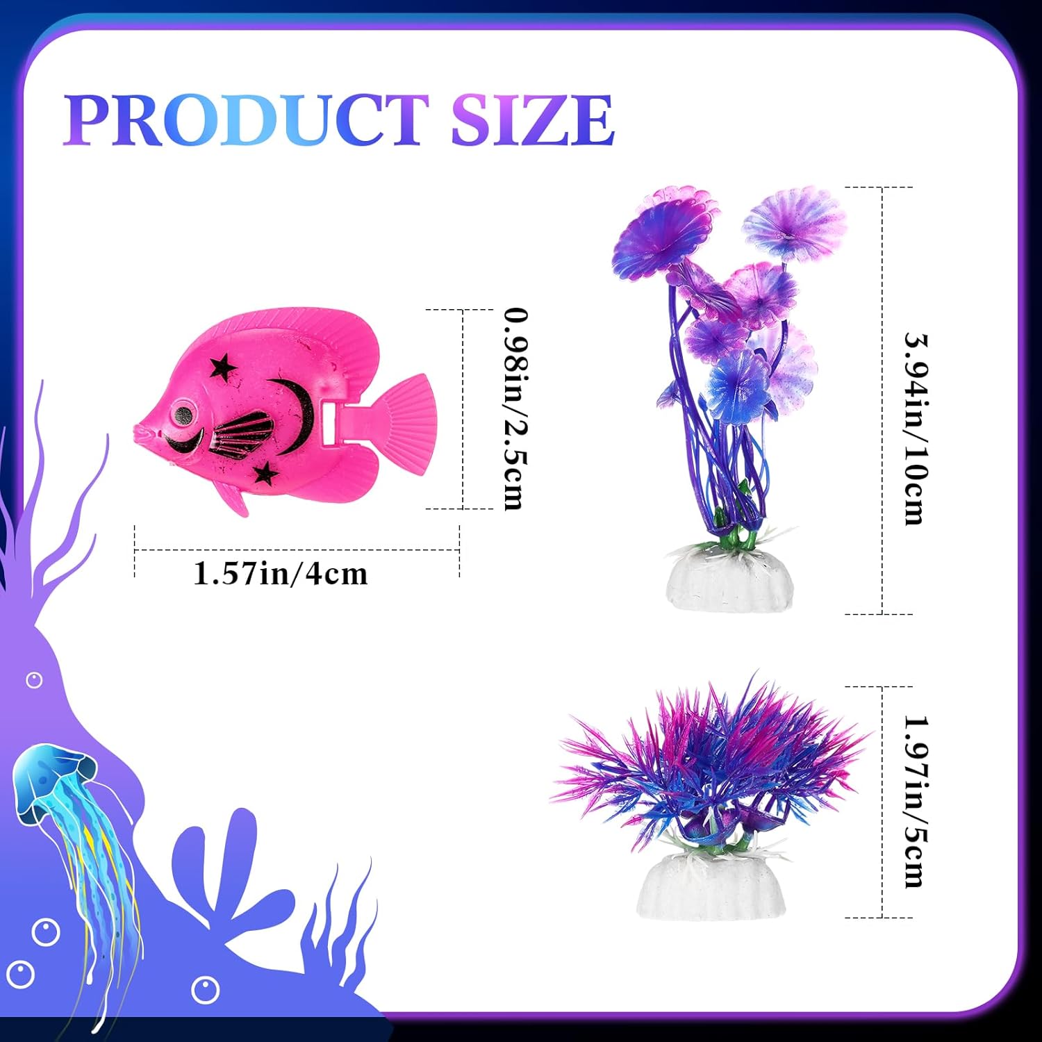Suitable Size: each artificial fish measures 1.57 x 0.98 inches, while the artificial aquatic plants stand approximately 3.94 inches in height; The included multi-colored stones weigh a total of 2.75 pounds, making them ideal for creating a lively underwater environment