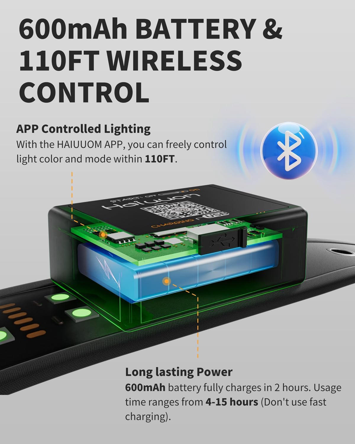 【All Color Options】Haiuuom brand glowing collar offers all lighting colors. Use the exclusive APP to freely set brightness, color, cycle modes, etc., and easily create unique lighting effects. With LED5050 lamp beads, it’s 5 times brighter than regular collars, giving 2600ft night visibility for your dog’s safety, perfect light for dog walking at night.