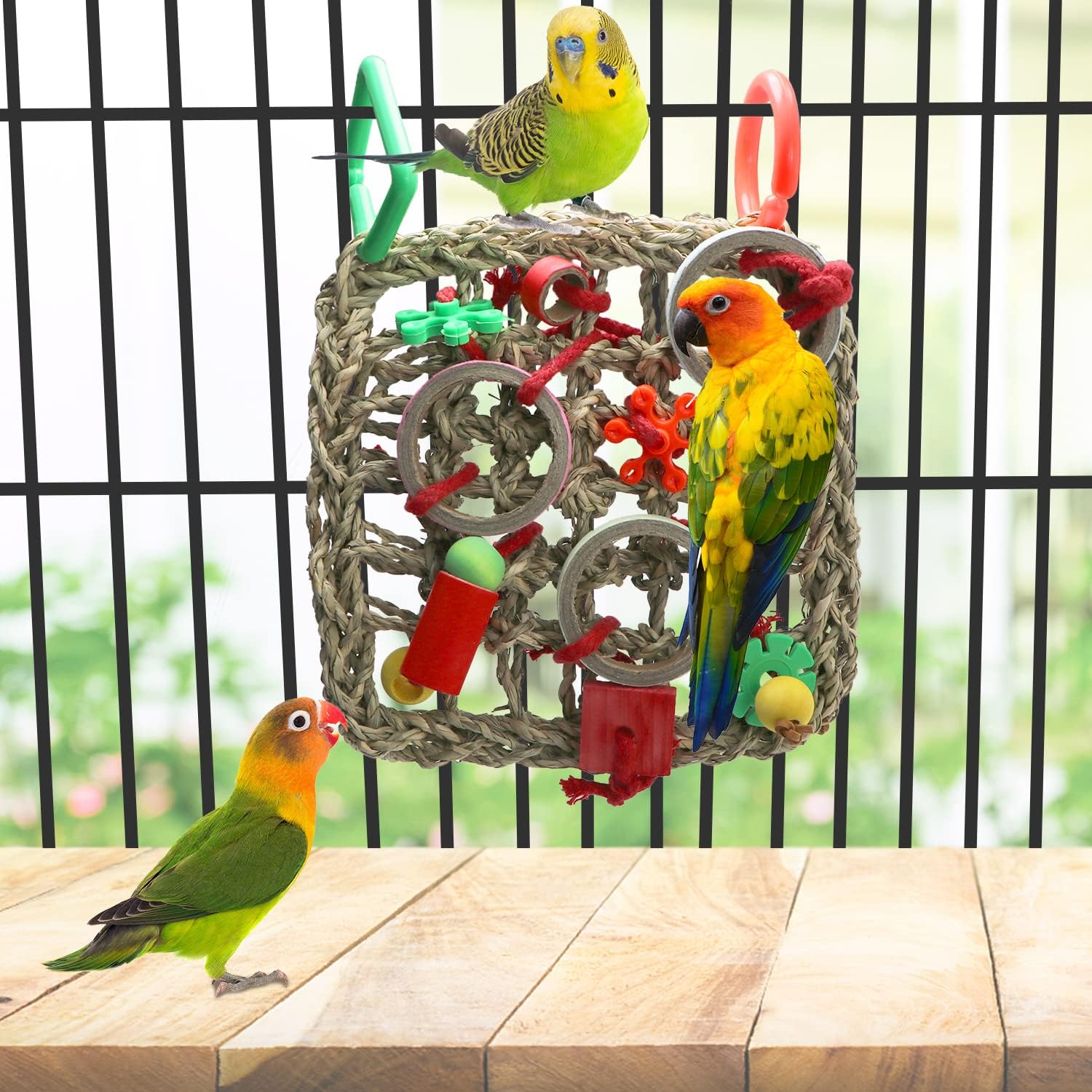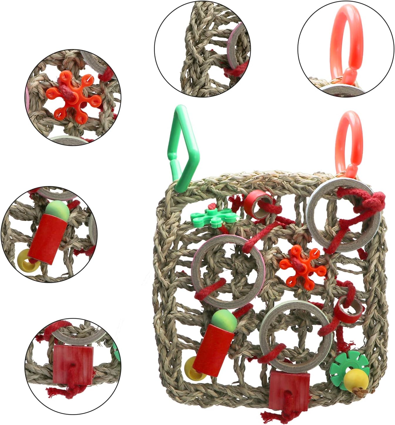 Litewoo Bird Climbing Net Straw Braid Rope Net Hammock Ladder Bird Toy Rope Hanging Foraging Wall (18X24cm/7X9.4 inch) …