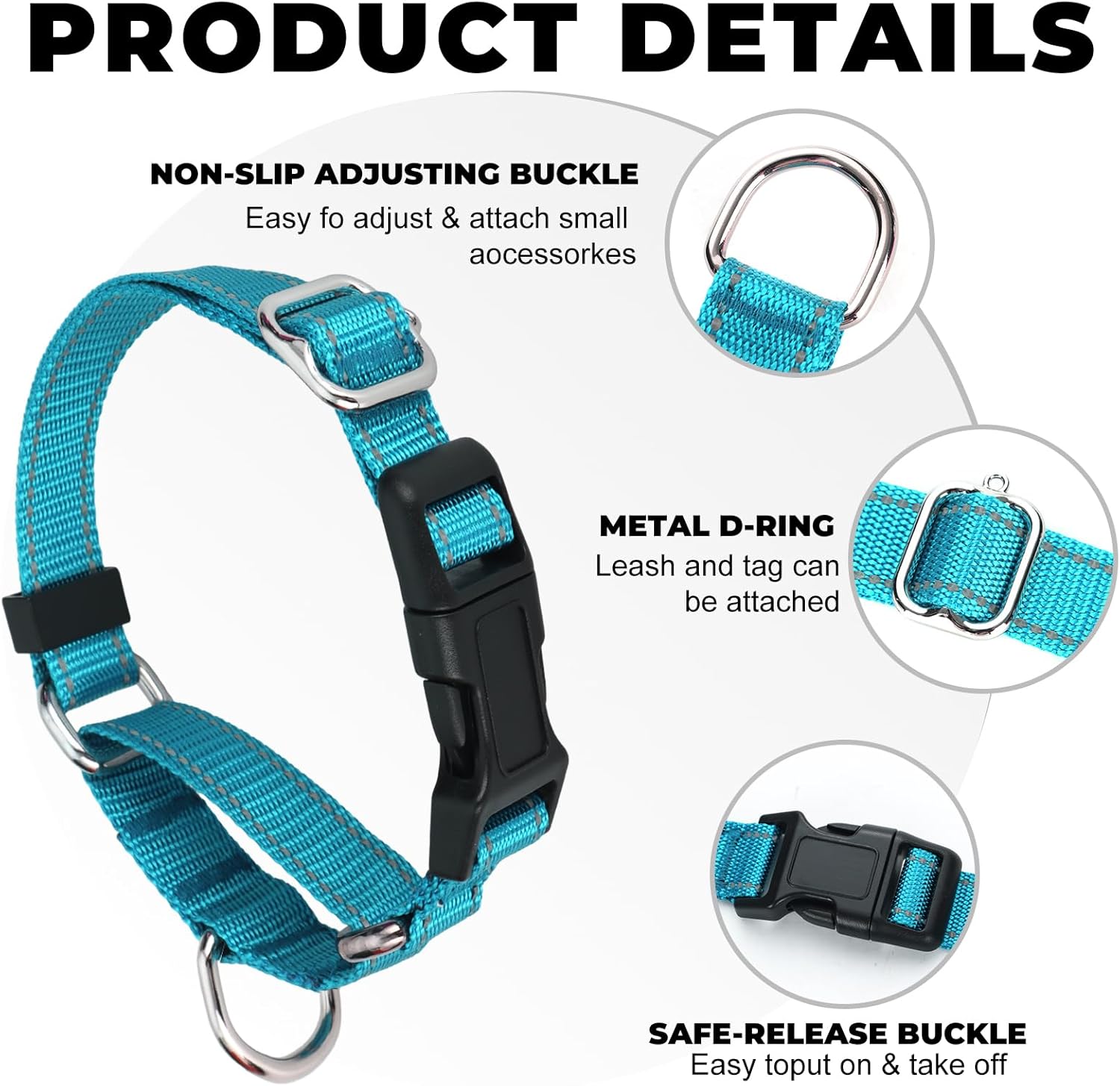 Martingale Collar for Dogs,Reflective Martingale Dog Collars with Quick Release Buckle,Adjustable Nylon No Pull Dog Collar for Dogs Walking Training (Azure Blue, Medium)