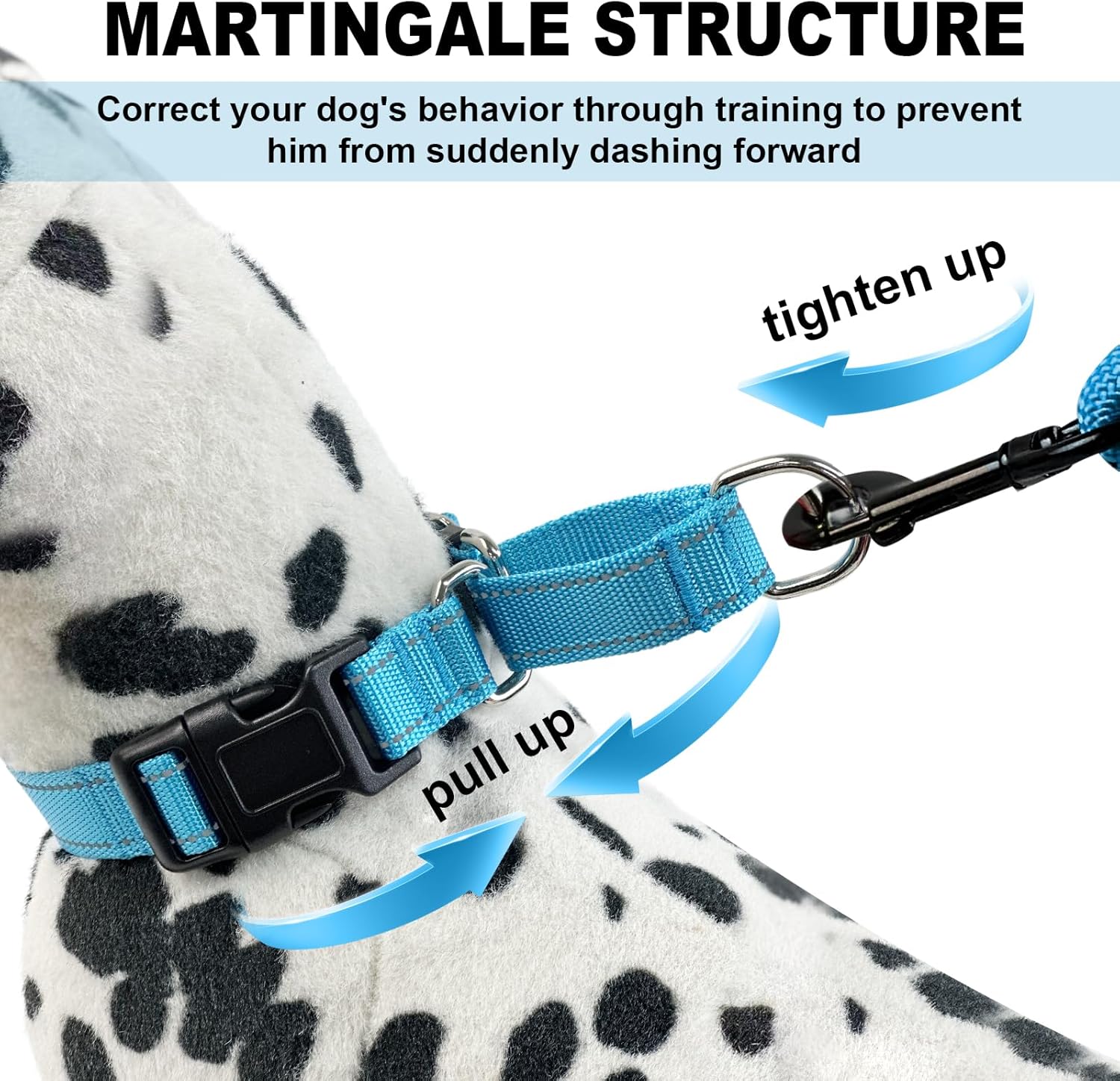 【GREAT FOR TRAINING & DAILY WALKS】The martingale collar for dogs is great for both training and everyday use.Martingale dog collars are designed to help prevent escapes and give you gentle control,making the blue dog collar often recommended by veterinarians and trainers for managing leash pulling and encouraging good behavior