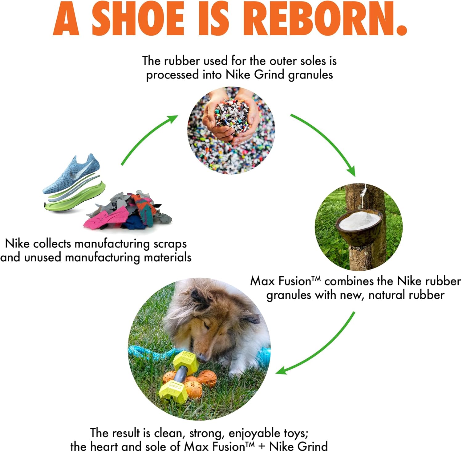 SAFE & DURABLE RUBBER MATERIAL: Crafted with a durable blend of Nike Grind rubber and natural rubber, this strong dog toy for aggressive chewers is built to last through repeated play sessions. The thick rubber material provides a firm yet flexible feel that’s safe for your dog’s teeth and gums, making it a great option for teething puppies or adult dogs that love to gnaw. No sharp edges, no weak spots—just long-lasting fun.