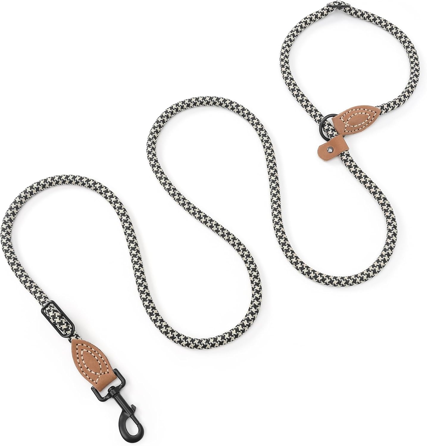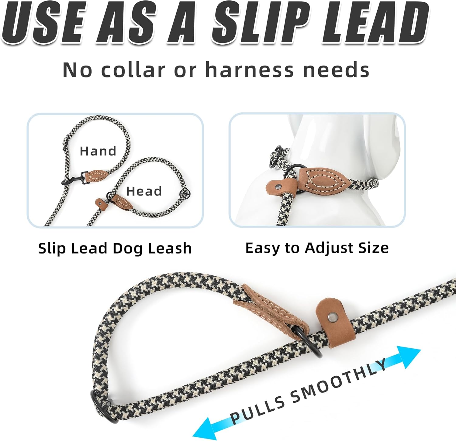 【Convincing Quality】Mile High Life slip lead features classic braided cotton rope and tightly stitched leather tip. Elegant and sturdy cotton dog rope has ultimate strength and maximum durability and can withstand extreme force and pulling power, don’t worry about breaking. It’s designed to withstand any adventures you and your dog embark upon
