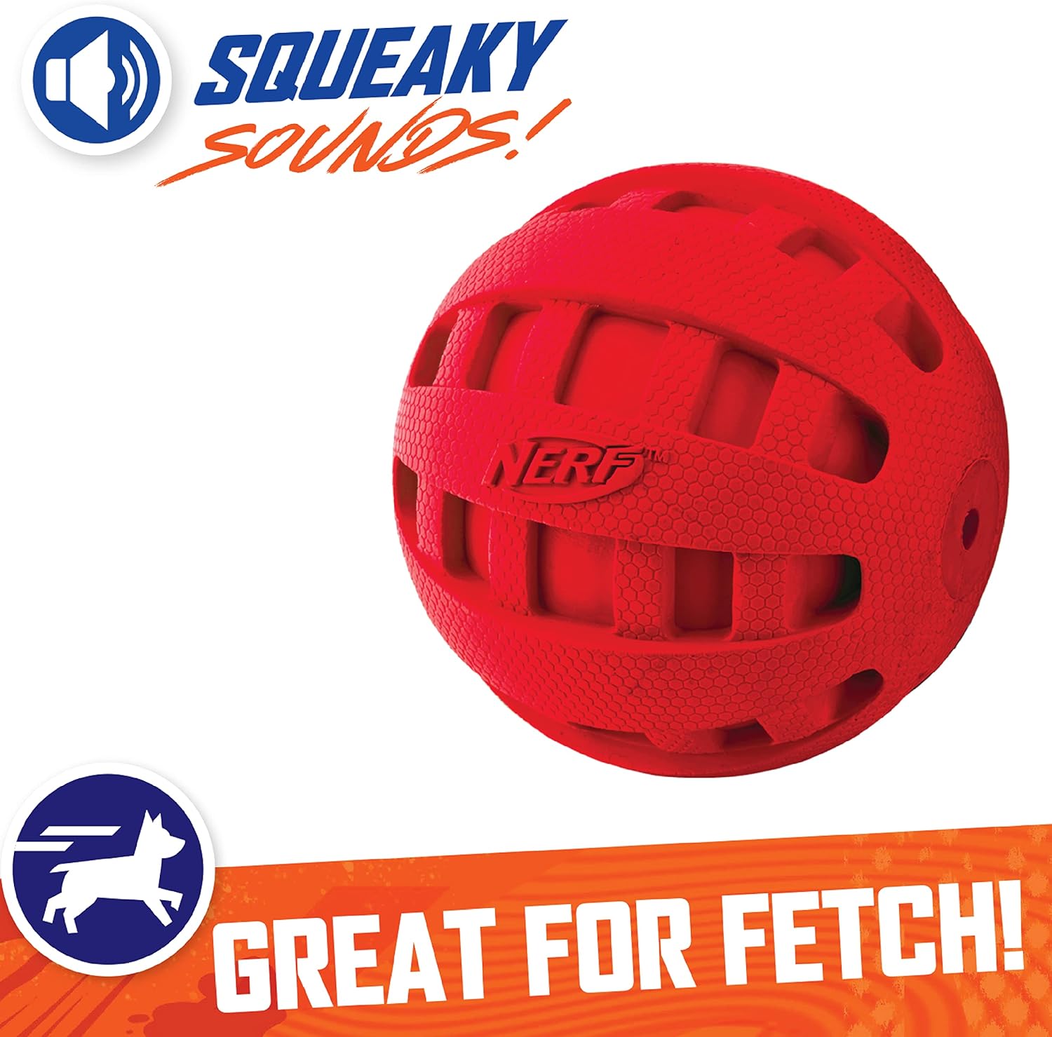 Nerf Dog Rubber Ball Dog Toy with Checkered Squeaker, Lightweight, Durable and Water Resistant, 4 Inch Diameter for Medium/Large Breeds, Single Unit, Red