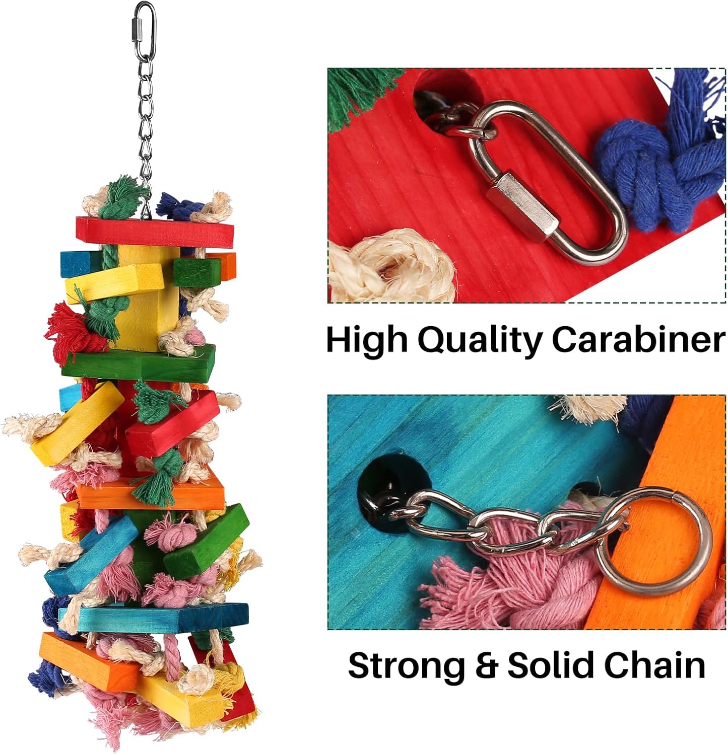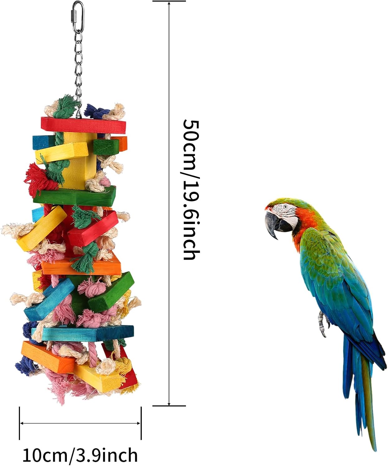 Neween Large Parrot Toy, 20in Bird Parrot Toy, Multicolored Natural Wooden Bird Chewing Toys for Large Macaws, African Grey and a Variety of Amazon Parrots