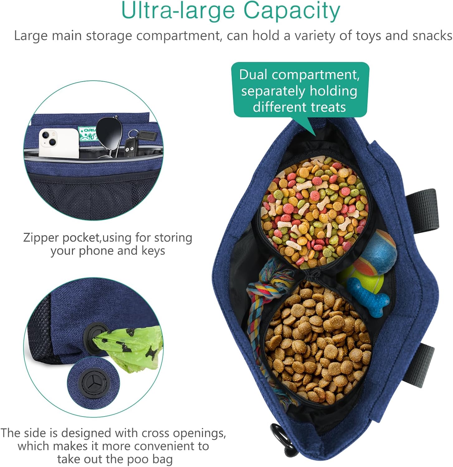 ORIA Dog Treat Training Pouch, Dog Treat Bag, Dog Food Bag, Removable Inner Pocket, Built-in Poop Bag Dispenser, Easily Carries Pet Toys, Kibble, Treats, Blue