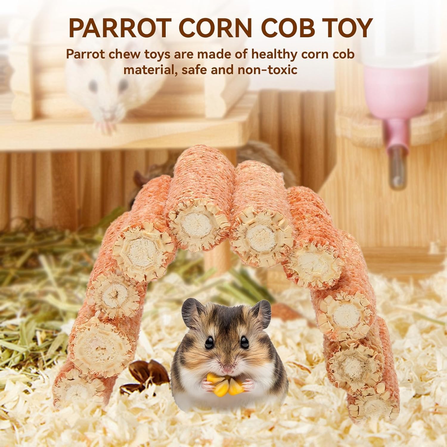 SAFE MATERIAL: Parrot chew toy is made of healthy corn cob material can be gnawed and swallowed, and pets will have no problem swallowing it.APPLICABLE OBJECT: Parrot corn cob toy is not only good looking but also very practical, perfect for pet hamsters, guinea pigs, rabbits and other miniature animals, small and medium sized parrots can also be used.MULTIPURPOSE: Parrot arch bridge toy gives small animals a teeth grinding toy and can also be used as a hiding place for small animals, the safe material and appearance can easily attract the attention of small animals.TEETH GRINDING AND CHEWING: Small animals chewing toys are good for teeth, can be chewedUSE NOTE: Corn cobs, individual materials on the existence of worm holes, is normal, no eggs and live insects, does not affect the use.