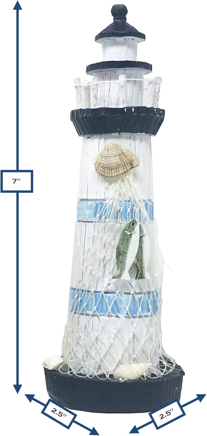 Lighthouse = 2.5” (W) x 2.5” (D) x 7” (H)
