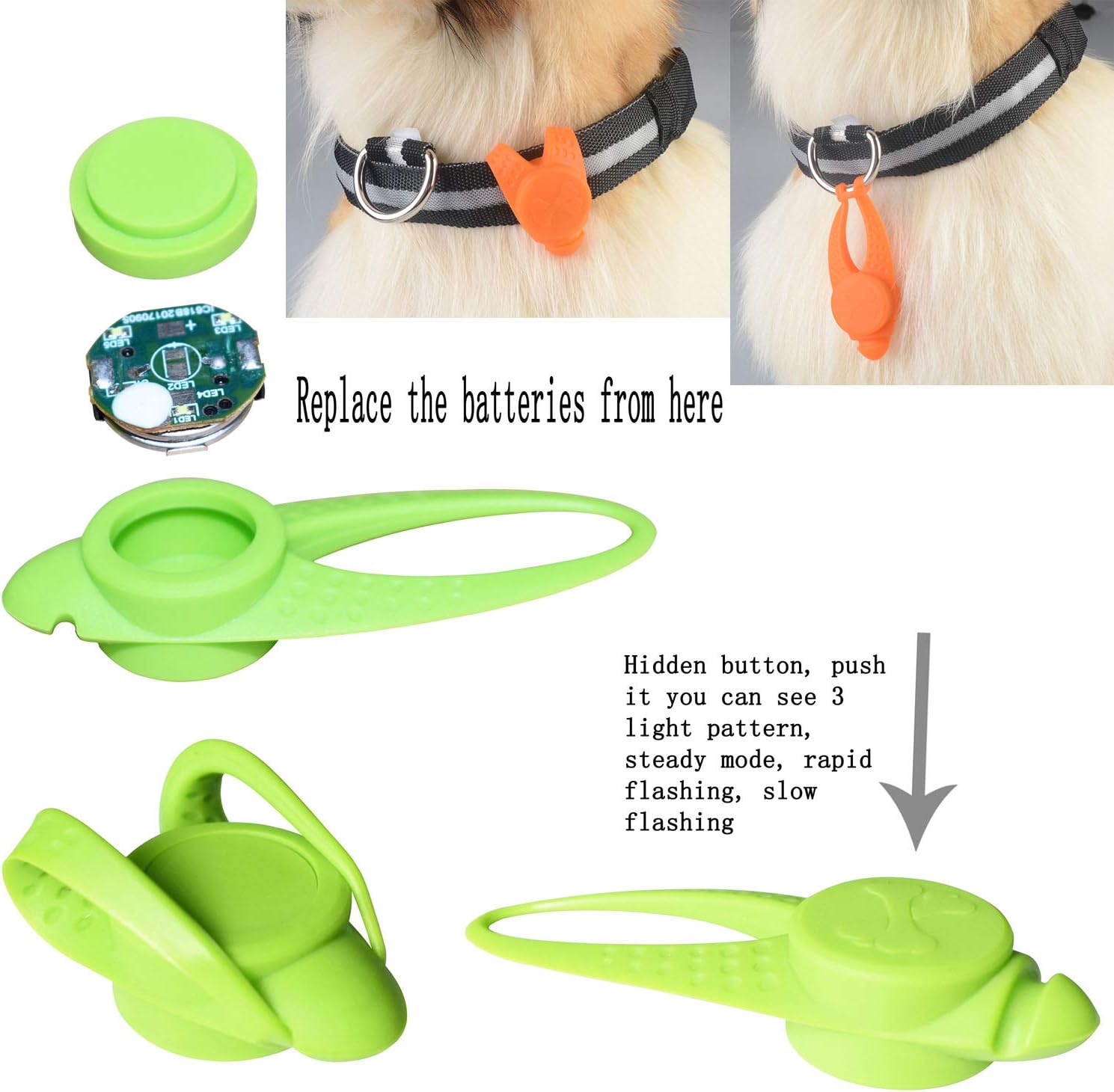 Package: 5 x Pet Silicon Pendant(Orange/ Pink/ Red/ Blue/ Green). SUPER BRIGHT: Our Super Bright colors keep your dog or cat safe, visible for more than 1/2 mile. all-weather dog collar charm or dog collar light for when your pup is playing out in the dark and be seen by drivers on roads, make it easy for you to look for him or her in the night, and monitored well when walking outside