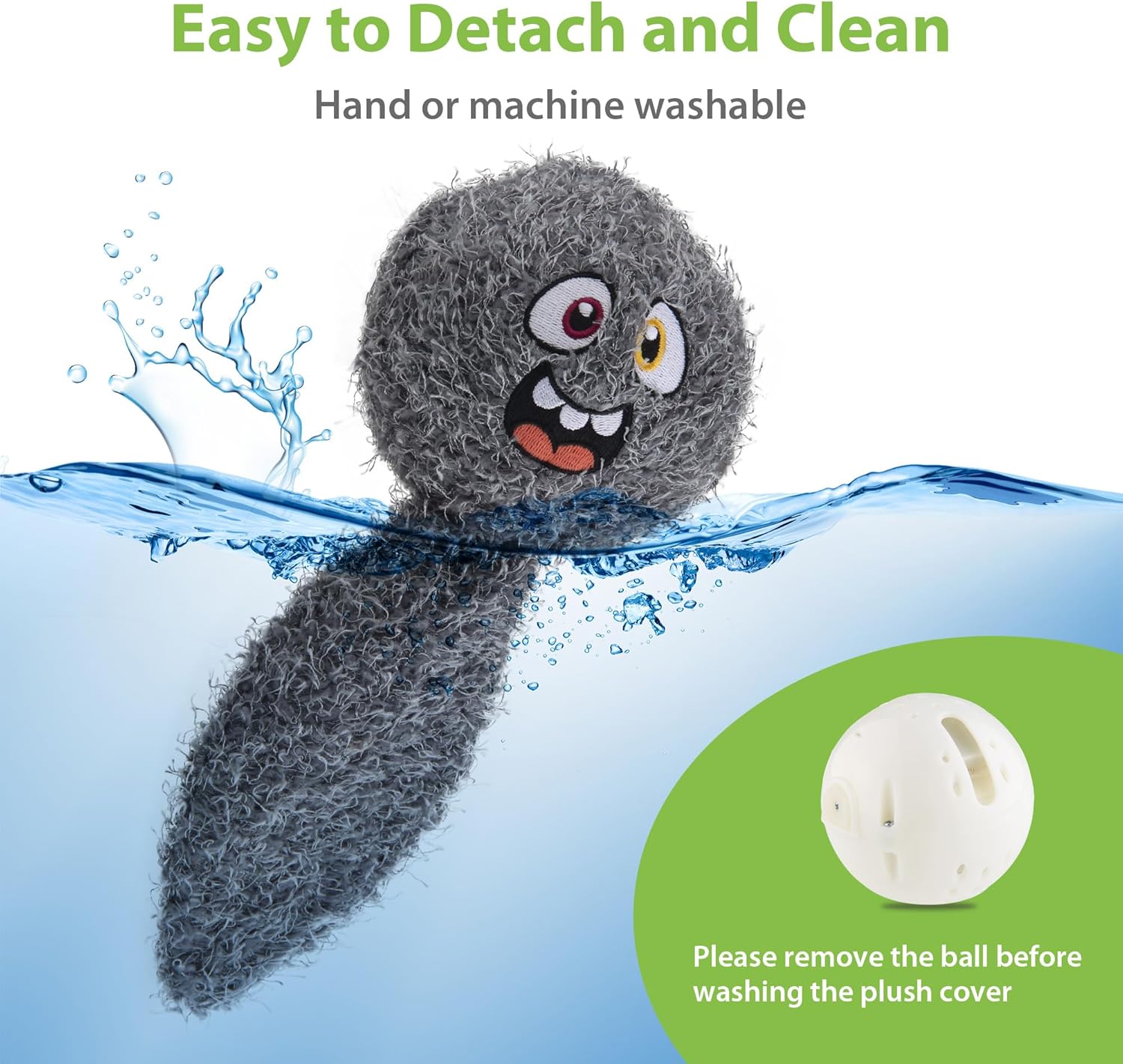 PETGEEK Interactive Squeaky Dog Toy, Automatic Moving Vibrating Dog Balls with Plush Cover, Rechargeable Perro Juguetes with Recording and Music Mode, Crinkle Pet Plush Toy for Boredom, Grey